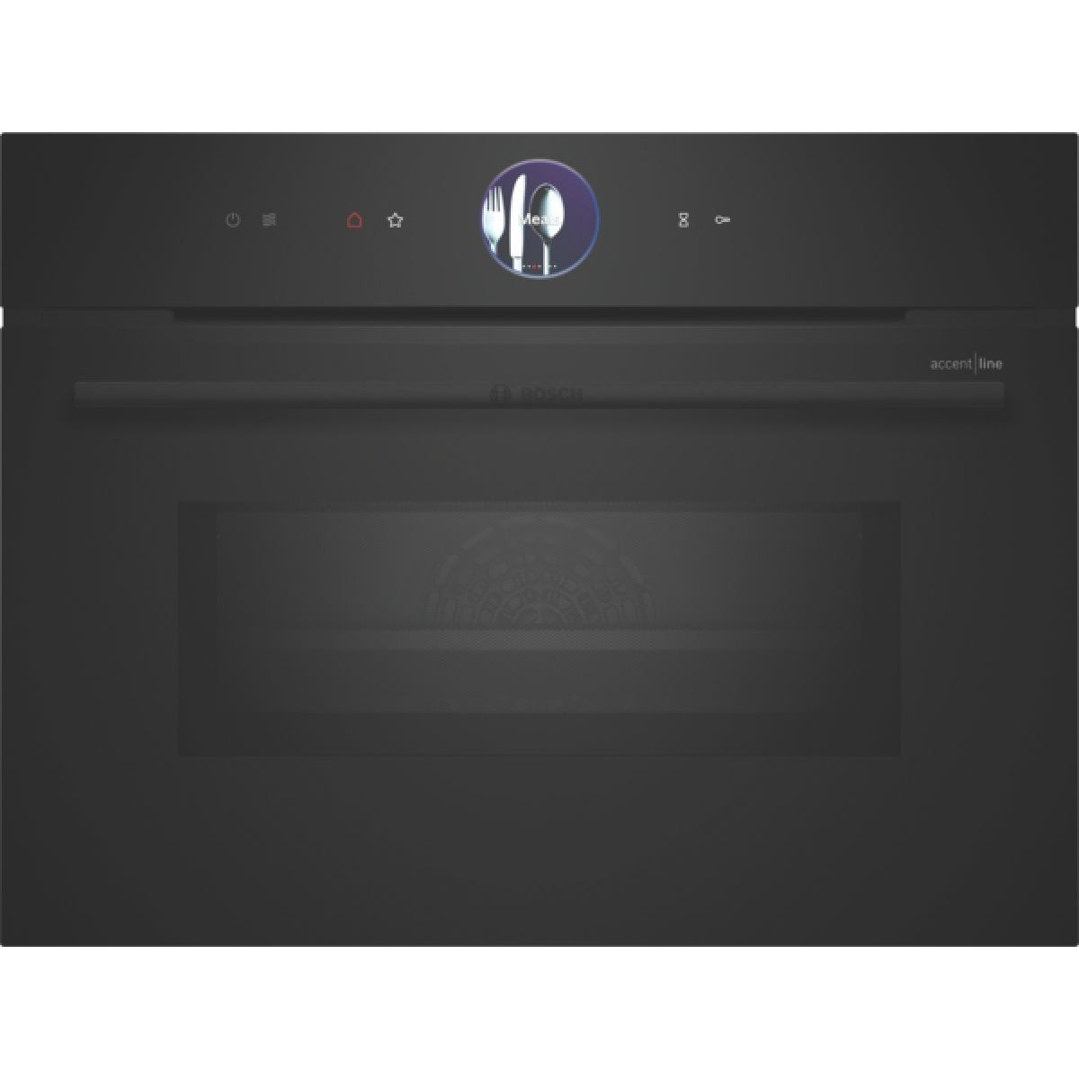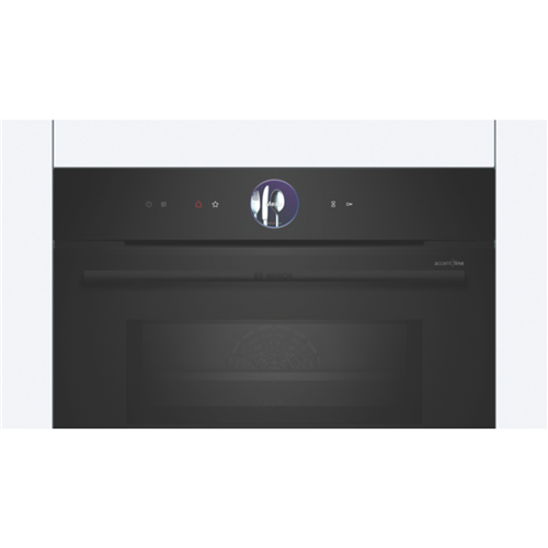 Take your cooking to the next level with the sleek black Bosch Series 8 Accentline 45cm combination microwave oven. With a spacious 45L capacity and 900W of power this versatile appliance makes meal prep a breeze. The intuitive touch control panel and TFT display allow you to easily select from 20 heating methods like AirFry grill defrost and more. The 4D HotAir function and Air Fry technology let you achieve deliciously crispy results when baking or roasting while the auto cook menus and oven assistant with voice control provide guidance for achieving perfect results every time. With advanced features like residual heat indicator and actual temperature display this combination oven takes the guesswork out of cooking. HomeConnect even allows you to control your oven remotely. Bringing style and functionality to your kitchen the Bosch Accentline microwave will inspire you to discover new recipes and cooking techniques. The manufacturer's part number for this product is CMG936AB1A.