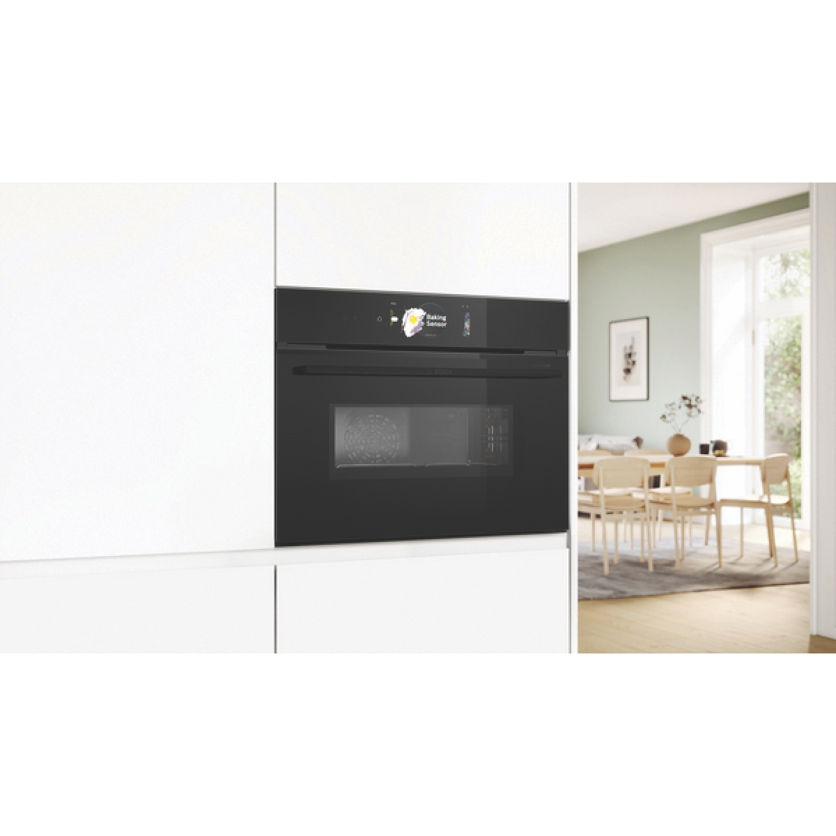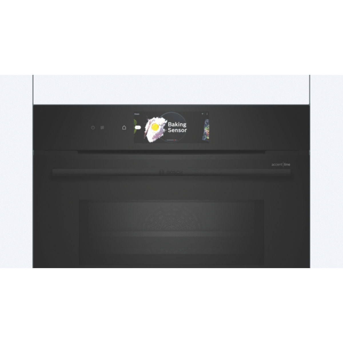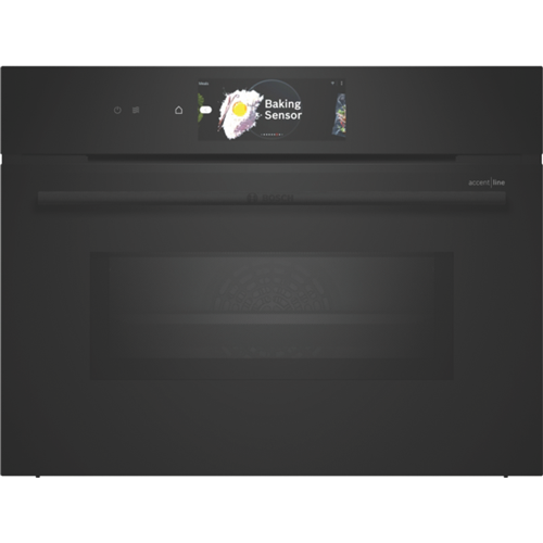 Bring gourmet cooking into your home with the Bosch Series 8 Accentline 45cm Combination Microwave Oven. This sleek built-in microwave finished in sophisticated black makes an elegant addition to your kitchen. With a generous 45 litre capacity and 900W of power it has the flexibility to handle all your cooking needs. The intuitive touch control panel and TFT display provide easy access to the microwave's 22 functions. From 4D HotAir and AirFry to pizza grilling defrosting and slow cooking settings you'll have the tools to prepare delicious meals. The Bosch microwave can even keep dishes warm and has a special drying mode. With 5 power levels automatic safety features like child lock and residual heat indicator and a durable stainless steel interior this is a high-quality user-friendly appliance. The manufacturer's part number for this product is CMG978NB1A. Bring gourmet cooking into your home today with the Bosch Series 8 Accentline Microwave.