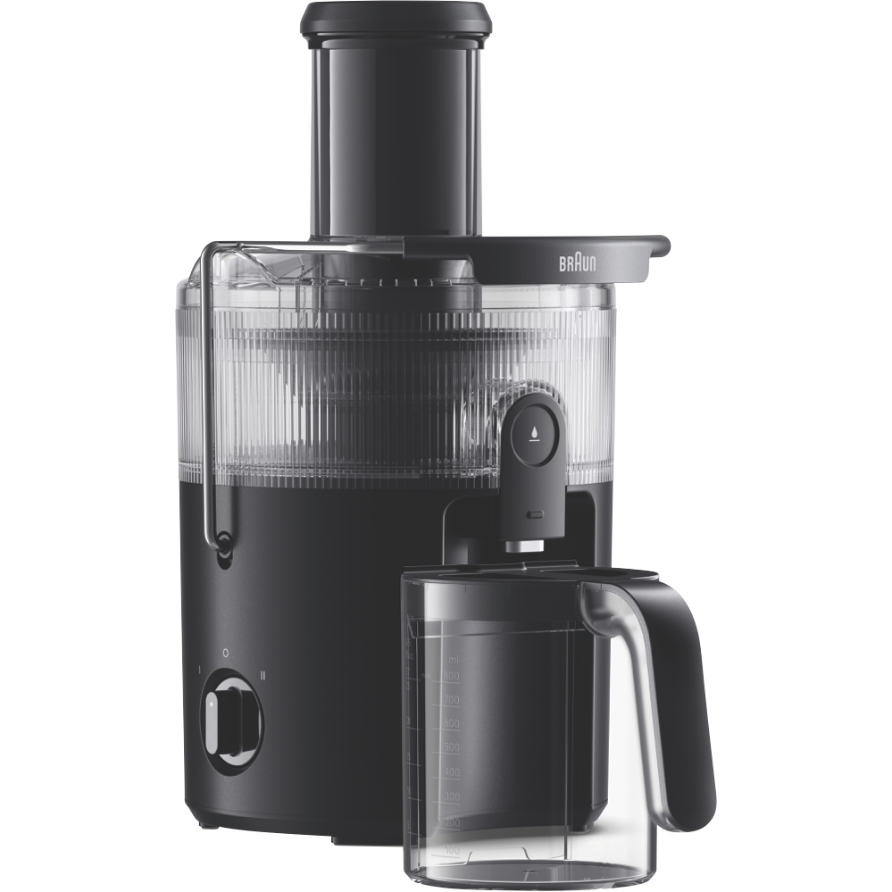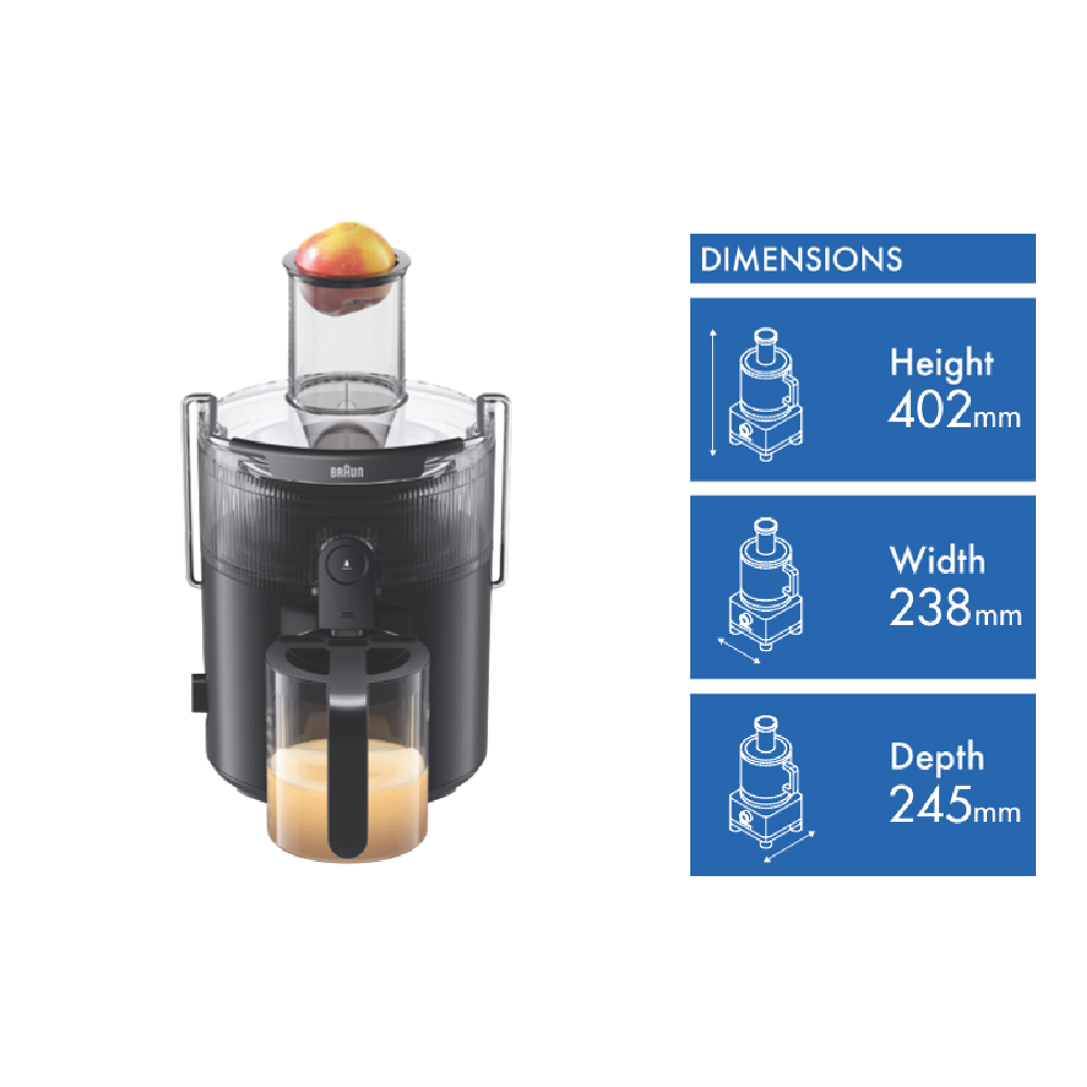 Looking to make fresh juice part of your daily routine? This black juicer with ColdXtract and FastXtract Technology lets you enjoy smooth healthy drinks in no time thanks to its 800 watt motor and two speed settings. You can pop whole fruits and veggies into the 75 millimetre round opening so there s less prep and more sipping. The 1.5 litre pulp container means you can extract up to two litres of juice before needing to empty it while the drip-stop function keeps your bench clean. Dishwasher-safe parts and a non-stick easy-to-clean pulp container make tidying up simple and the four-way safety system gives you peace of mind. It also comes with cord storage and a handy cleaning brush. With a height of 402 millimetres width of 238 millimetres and depth of 245 millimetres it fits easily on most kitchen benches and weighs just under four kilos. You ll get a two year manufacturer s warranty for extra reassurance. Model SJ5000. Enjoy quick hassle-free juicing at home.