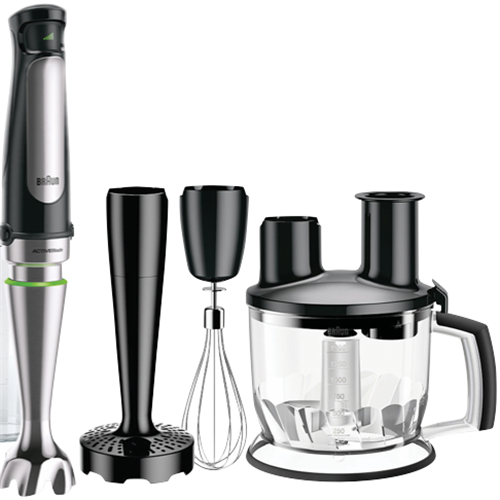 Transform your kitchen into a gourmet wonderland with the Braun MultiQuick 7 Gourmet Hand Blender. This powerful 1000-watt blender makes quick work of food prep with its SmartSpeed technology and stainless steel blades. The EasyClick system allows you to switch between accessories faster for non-stop blending action. Puree soups crush ice and blend smoothies with the hand blender attachment. Whip up vinaigrettes mayo and more using the whisk accessory. Chop slice shred and julienne fruits veggies and cheese with the food processor attachments. With a generous 1.5L bowl you can make large batches in one go. The stainless steel finish offers durability while the dishwasher-safe parts make cleanup easy. Experience the versatility of a food processor and hand blender in one handy device. The Braun MultiQuick 7 helps you prep ingredients fast so you can enjoy delicious homemade meals every day.The manufacturer's part number for this product is MQ7077X.Discover how the Braun MultiQuick 7 can enhance your cooking today.