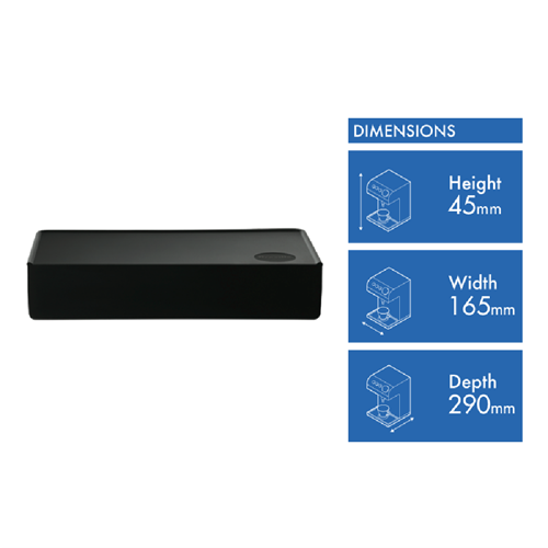 • 165 mm width, 290 mm depth, 45 mm height