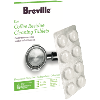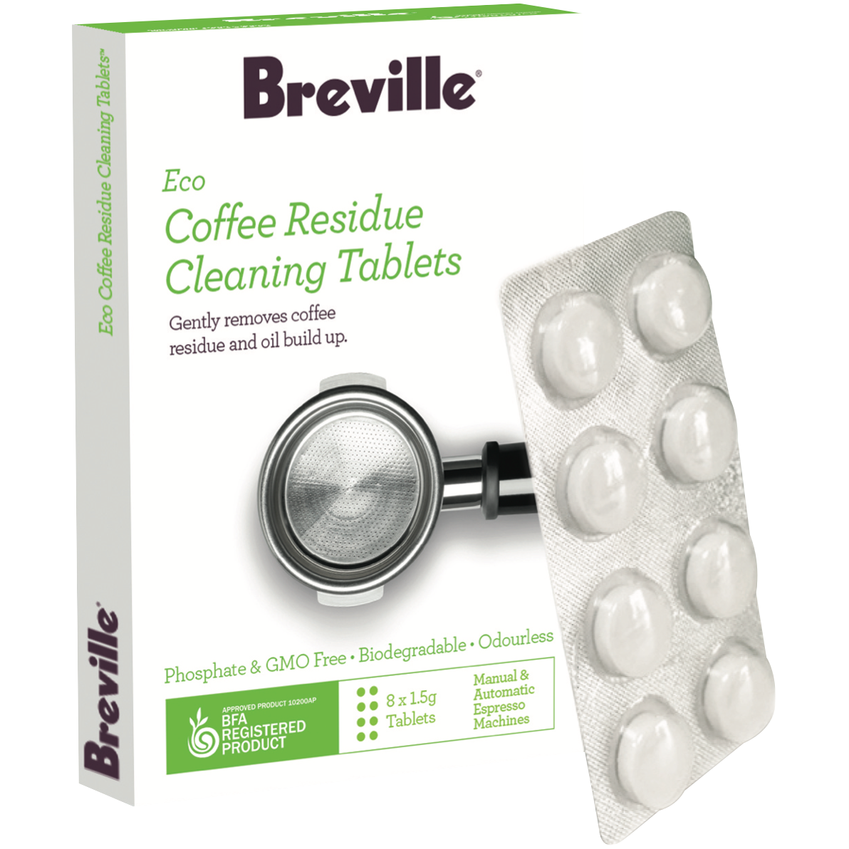 Keep your Breville coffee machine running like new with these eco-friendly cleaning tablets. Specially formulated to remove oily coffee residues and prevent limescale buildup these phosphate and GMO-free tablets provide a deep clean without harsh chemicals. Simply pop one in the filter basket and run a cleaning cycle for sparkling results. The biodegradable formula is odourless too ensuring your kitchen stays fresh. Maintaining your machine is key to extracting rich cafe-quality coffee every time. So reach for these tablets every few weeks for a fuss-free clean without compromise. With their environmentally responsible ingredients you can clean with a conscience as well. For easy re-ordering the manufacturer's part number for this product is BES012CLR0NAN1. Give your Breville coffee machine some TLC with these residue cleaning tablets today.