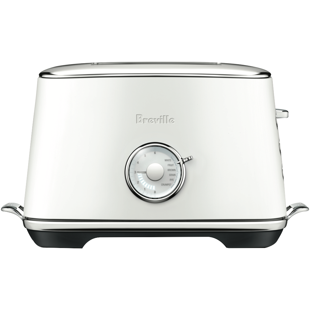 This compact Breville the Toast Select Luxe is a 2-slice toaster in sea salt matte white to bring a touch of luxury to your kitchen bench. It cleverly adjusts the toasting time for each type of bread - select from White Brown Grain Fruit Rye and Crumpet and the Breville Luxe BTA735SST4JAN1 takes care of the rest for you. The slots are extra wide and deep to accommodate larger pieces of bread without a worry. It has an 'A Bit More' button for extra toasting time if your toast comes up too light a browning control slider for toast your way and a 'Lift & Look' lever to check progress without interrupting the toast cycle. This Breville toaster BTA735SST4JAN1 has an LED progress indicator a sound alert when your toast is ready and cord storage integrated into the base to keep things clutter-free. Constructed in brushed stainless steel with premium metallic finishes chrome accents and back-lit buttons this stunning toaster is about toasting versatility and style in one.