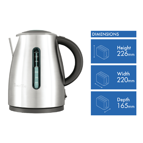 Bring the elegance of a 5-star hotel to your kitchen with the Breville Soft Open Stainless Steel Kettle. This sleek 1.7L kettle crafted from durable stainless steel provides the ultimate brewing experience. The soft opening lid prevents unwanted splashing while the concealed heating element allows for rapid boiling without compromising the exterior's clean lines. With a stylish multi-directional power base for cord storage this kettle makes a sophisticated statement in any home. The scale filter ensures purity and auto shutoff provides safety. Breville's patented design allows you to fill the kettle right up to the brim while the water window lets you monitor levels. Enjoy temperature precision with the Breville kettle's fast boil 2400 watt power. Weighing just 1.2kg the ergonomic design and stay-cool handle provide easy pouring and lifting. Bring five-star luxury to your countertop with the Breville Soft Open Stainless Steel Kettle. The manufacturer's part number for this product is BKE495BSS. Discover convenience with the Breville kettle today.