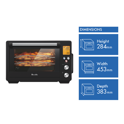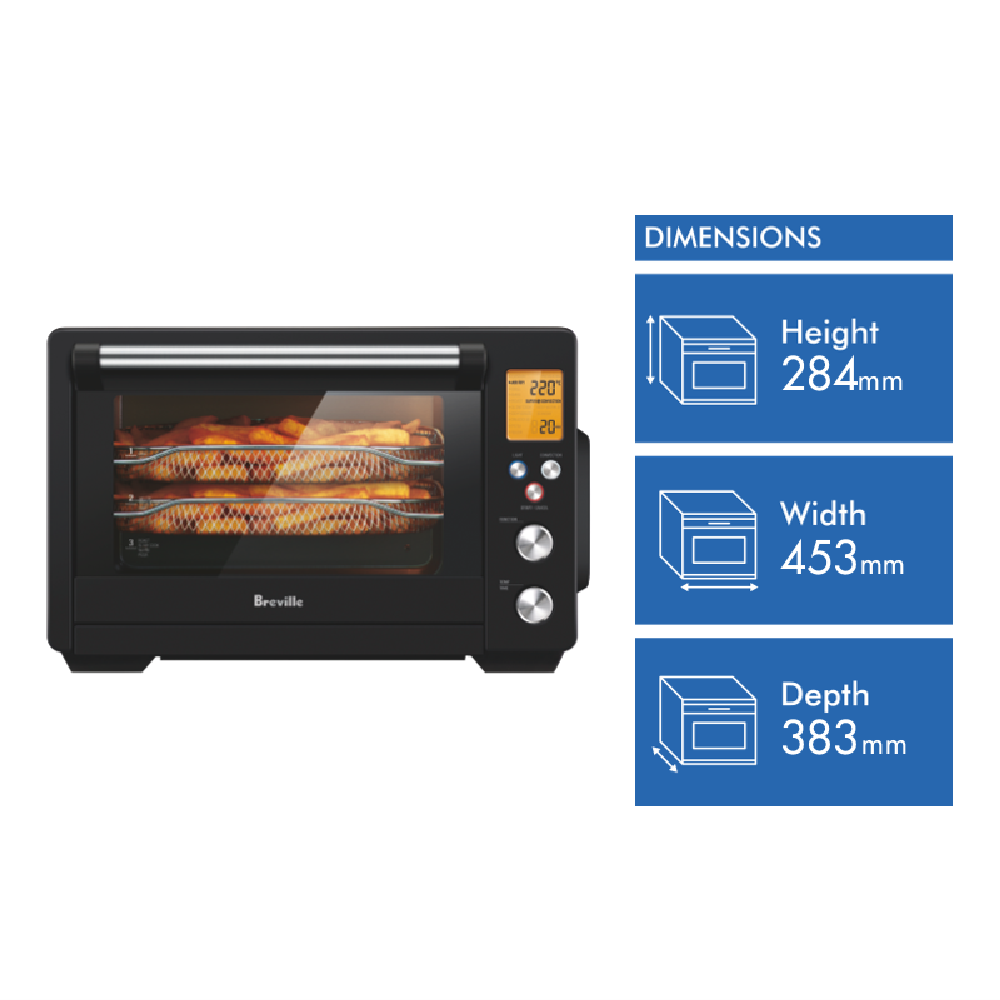 Make your kitchen the heart of the home with the Breville The All In 1 Compact Air Fryer Oven. This versatile 24L stainless steel benchtop oven simplifies cooking and adds a modern touch to your countertop. With 10 smart programs including Air Fry Bake Roast Grill and Slow Cook you'll be able to prepare family favorites and discover new recipes. The dual convection fans and four Quartz heating elements deliver fast even heating for perfect results every time. The LCD display and integrated oven light provide extra convenience while accessories like the non-stick baking tray wire rack and two air fry baskets maximize your cooking options. And at just 453mm wide this compact oven won't take up too much space. With a 1 year warranty and a manufacturer part number of LOV660MTB2IAN1 the Breville Air Fryer Oven lets you take your cooking game to new heights.