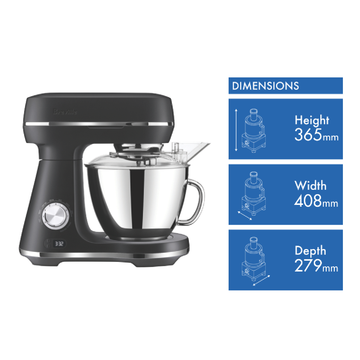 The Breville The Bakery Chef Hub Stand Mixer LEM750BTR is ready for all your heavy kitchen mixing whipping kneading and more needs. Inside is a 1000W motor backed by full metal gears waiting for even the toughest tasks like working a heavy sourdough crushing nuts into a banana bread or turning cream into the most luscious whipped mousse. Planetary mixing and the included scraper beater reduces any of the 4.8L bowl needing scraping by covering the full bowl. Included are a wire whisk and splash guard including pouring channel to easily add to the mix without splashing. Use the electronic speed control dial to perfectly speed up or slow down mixing and engage a pause on the whole process by pushing the dial in. Count up or down to start the mix as you like with the LED screen and buttons. The Breville Chef Hub also has plenty of additional compatibility with attachments like the Grinder Chef the Pasta Chef or the Food Processor Chef for amazing flexibility off one single appliance. Attachments not quoted as included are sold separately. The motor comes with a 5 Year Warranty for plenty of peace of mind in this kitchen investment.