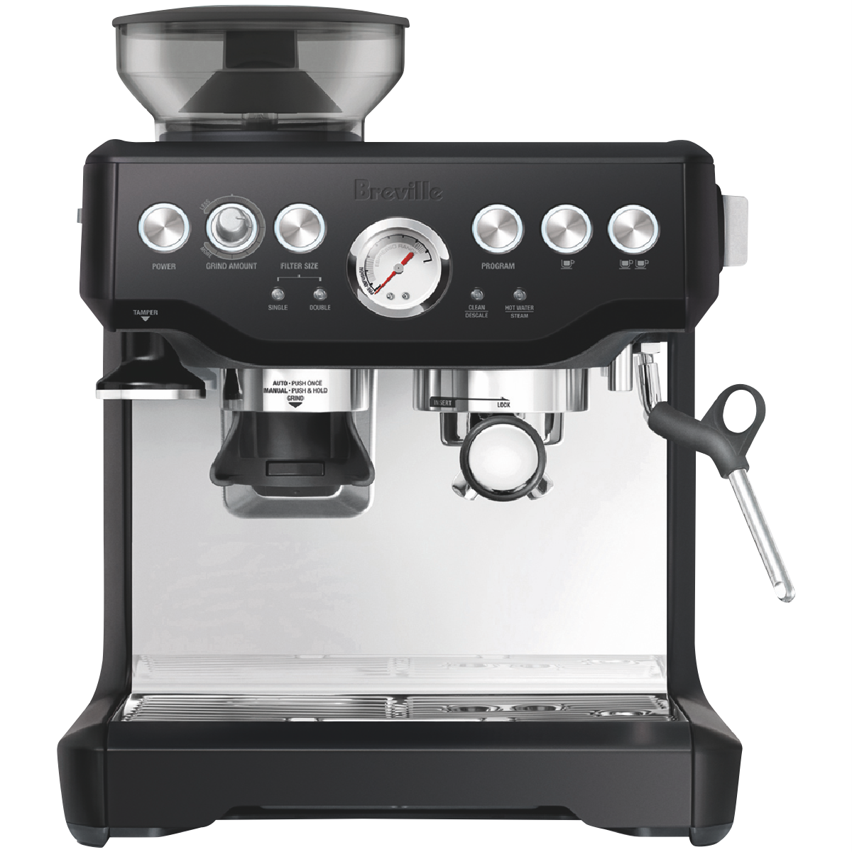 Kick start your day with cafe-quality coffee from the comfort of home with this Breville the Barista Express BES870BTR - the perfect coffee machine for both beginner baristas and more experienced coffee makers. Simply add your favourite roasted beans to the bean hopper then press a button to let the machine grind and dose your portafilter with the right amount of freshly grounded coffee for a delicious tasting brew. Select your preferred cup volume and the machine's automatic dosing will dispense the required amount of coffee. It has an adjustable grind size dial for coffee your way. To create cappuccino flat white or latte use the steam wand to texture and heat the milk to a silky-smooth consistency. This Breville espresso machine uses preinfusion to gradually increase water pressure to gently expand grinds for even extraction. Plus it automatically adjusts the water temperature after steam for optimal espresso temperature. You can experience an authentic tasting espresso or milky coffee favourite with this Breville the Barista Express coffee machine in black truffle.