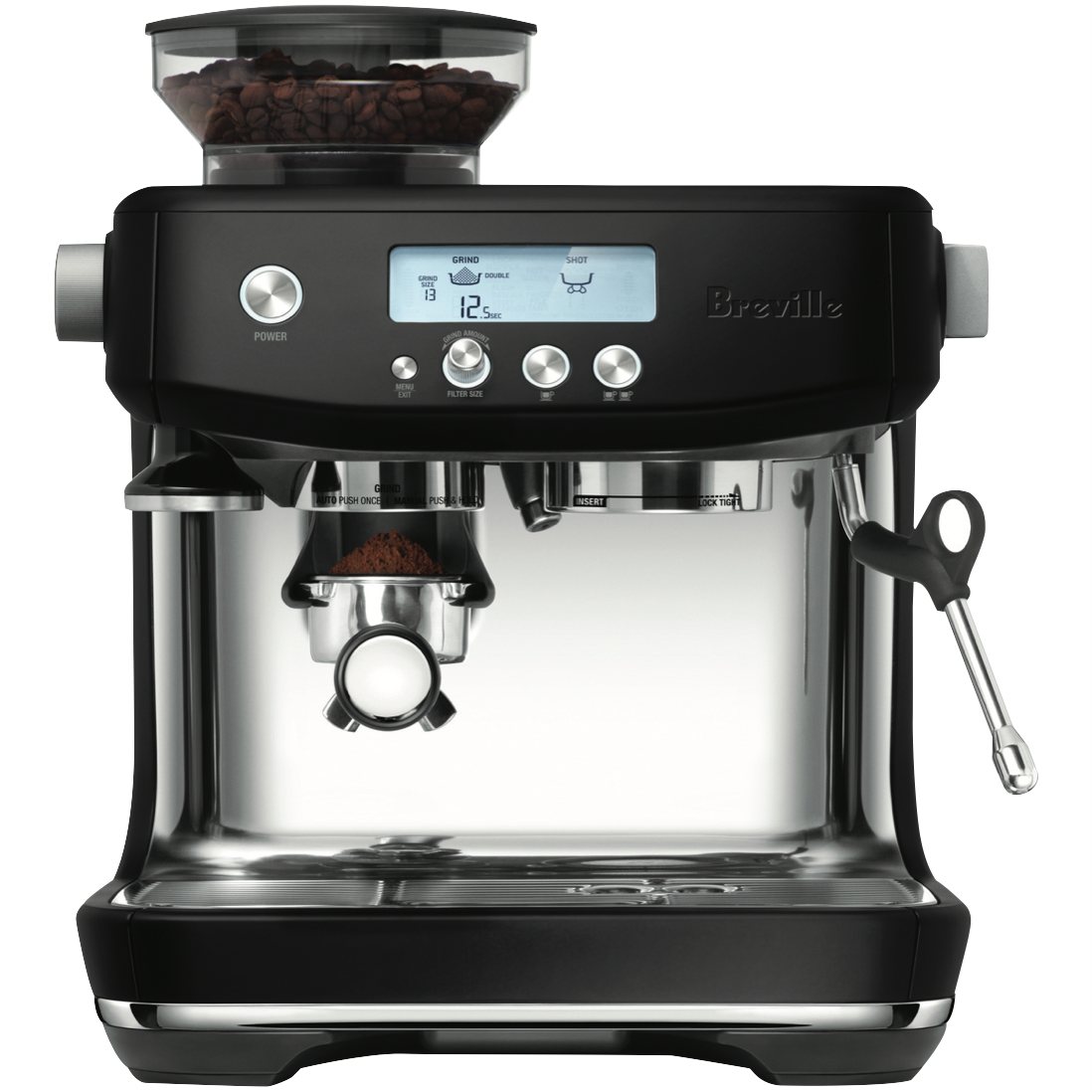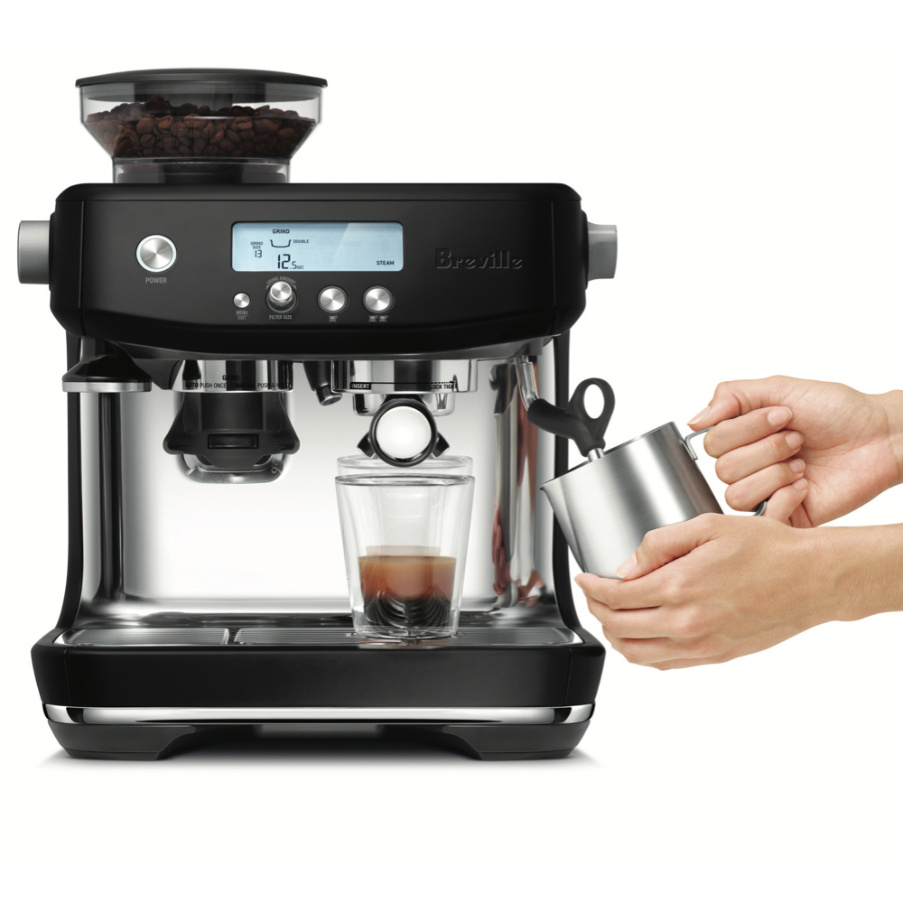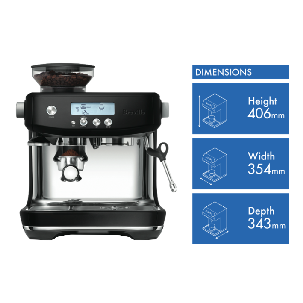 With barista-quality performance this Breville the Barista Pro Espresso Machine has an intuitive interface that helps you utilise precise information to create your cafe style coffee the way you like it. The BES878BTR4JAN1 features a powerful steam wand that enables precise milk texturing for silky micro foam to give you a luxurious start to the morning. Due to the addition of an innovative dual ThermoJet heating system this Breville manual coffee maker has fast three second heat up to get you going in the morning and precisely controls the temperature of the water for optimum coffee extraction to create a flavourful expresso.