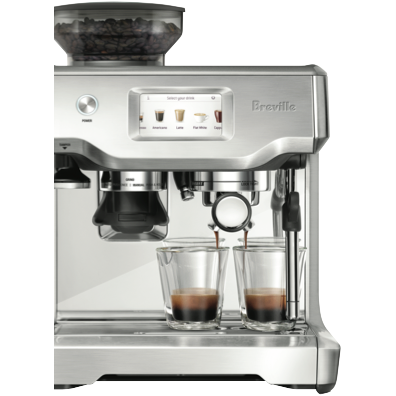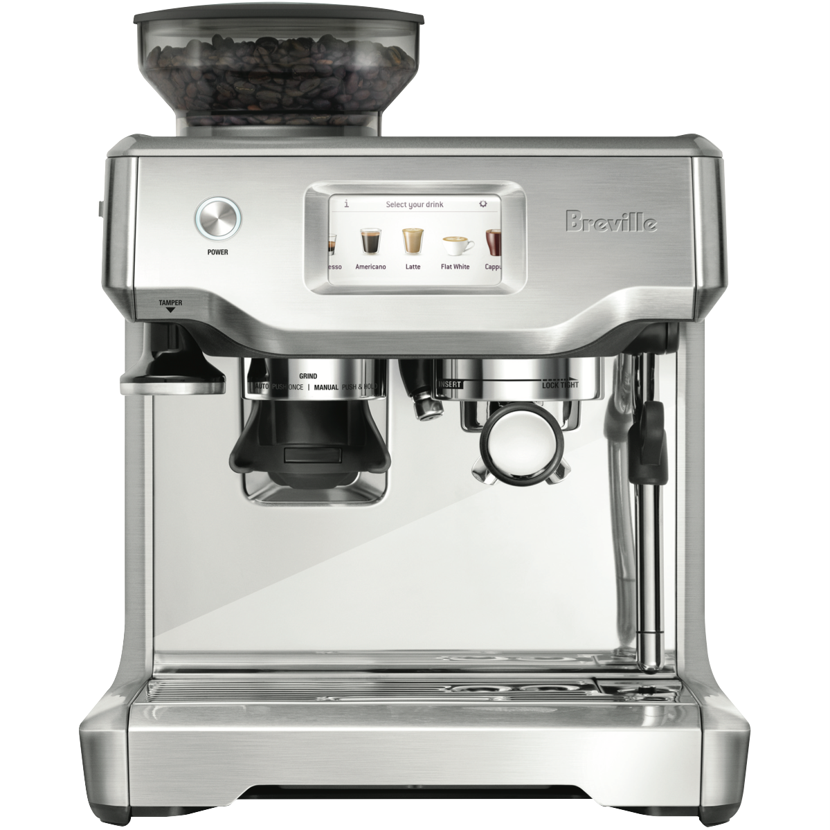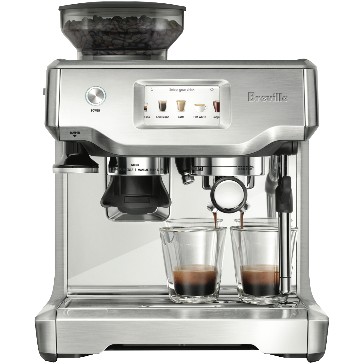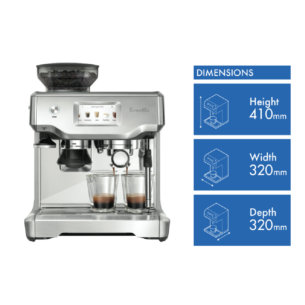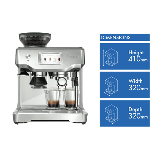 Kickstart your day with this Breville the Barista Touch Espresso Machine BES880BSS offering luxurious coffee extraction with a pre-infusion function and precise milk texturing for cafe quality coffee at home. With a dual ThermoJet Heating System allowing fast three second heat up and automatic micro-foam milk texturing; you and your loved ones can get caffeinated in no time. Plus the simple touchscreen operating system has intuitive technology with five pre-set drinks and eight customisable drink settings for quick access to your favourite beverages. With a steaming wand that has an automatic cleaning function this Breville coffee machine offers a wide range of options suitable for all coffee lovers.