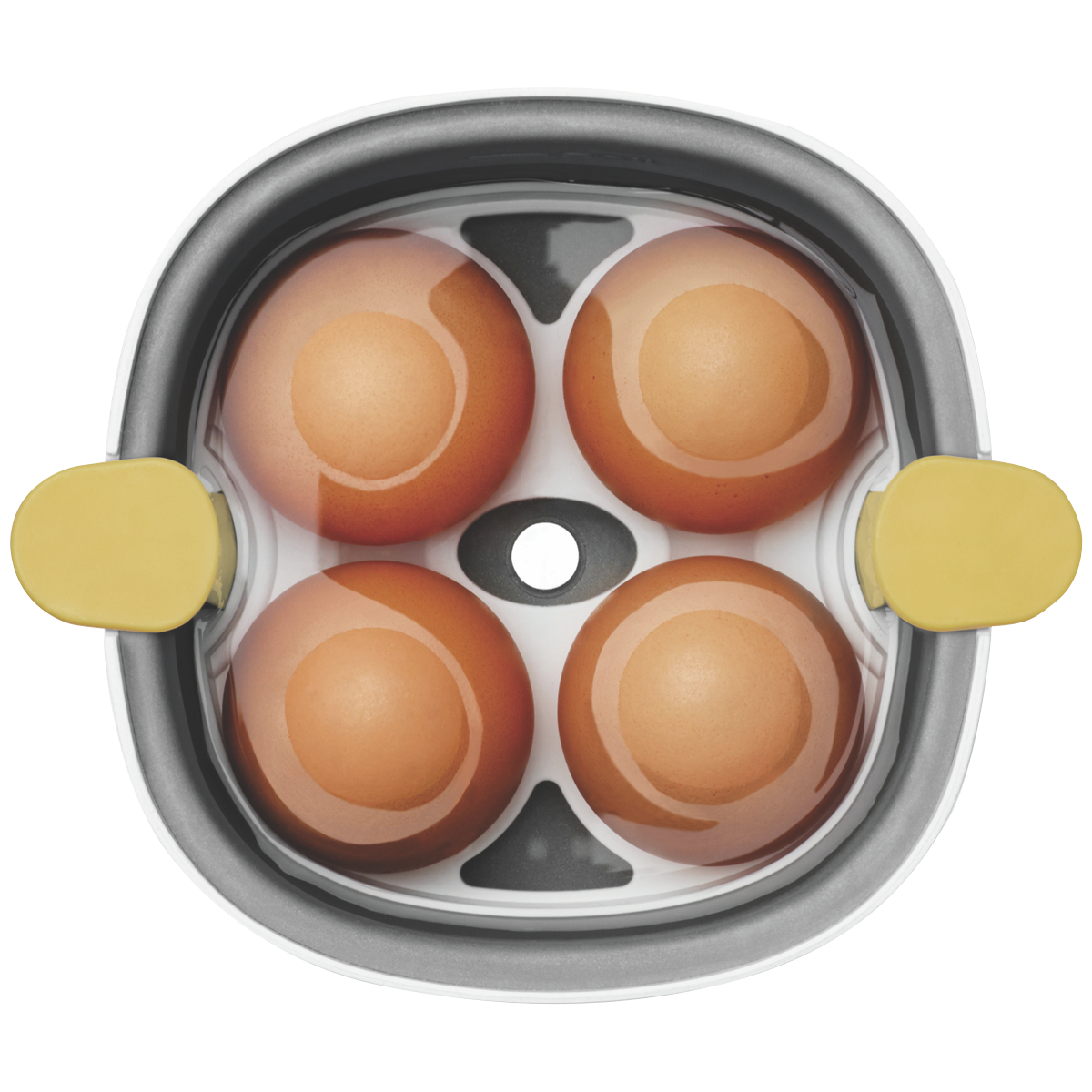• 4 egg rack with easy-lift handles and dual poaching tray
