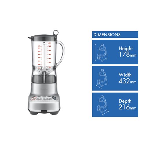 Bring the juice bar experience home with the Breville Fresh and Furious blender. This powerful 1300W blender features surgical grade serrated ice-crushing blades and a shatterproof 1.5L Tritan jug letting you craft smoothies juices nut milks and more with ease. With 5 variable speeds you can blend everything from soft fruits to hard ice cubes and frozen ingredients. The tight fitting Breville Assist lid allows you to blend and pour without making a mess. Dishwasher safe parts make cleanup a breeze. And with a sleek silver finish this blender will complement any kitchen décor. Whether you're blending up a morning smoothie or an afternoon protein shake the Fresh and Furious delivers commercial grade blending power for the home kitchen. Unleash your inner mixologist and create healthy drinks your whole family will love. The manufacturer's part number for this product is BBL620SIL2IAN1V.