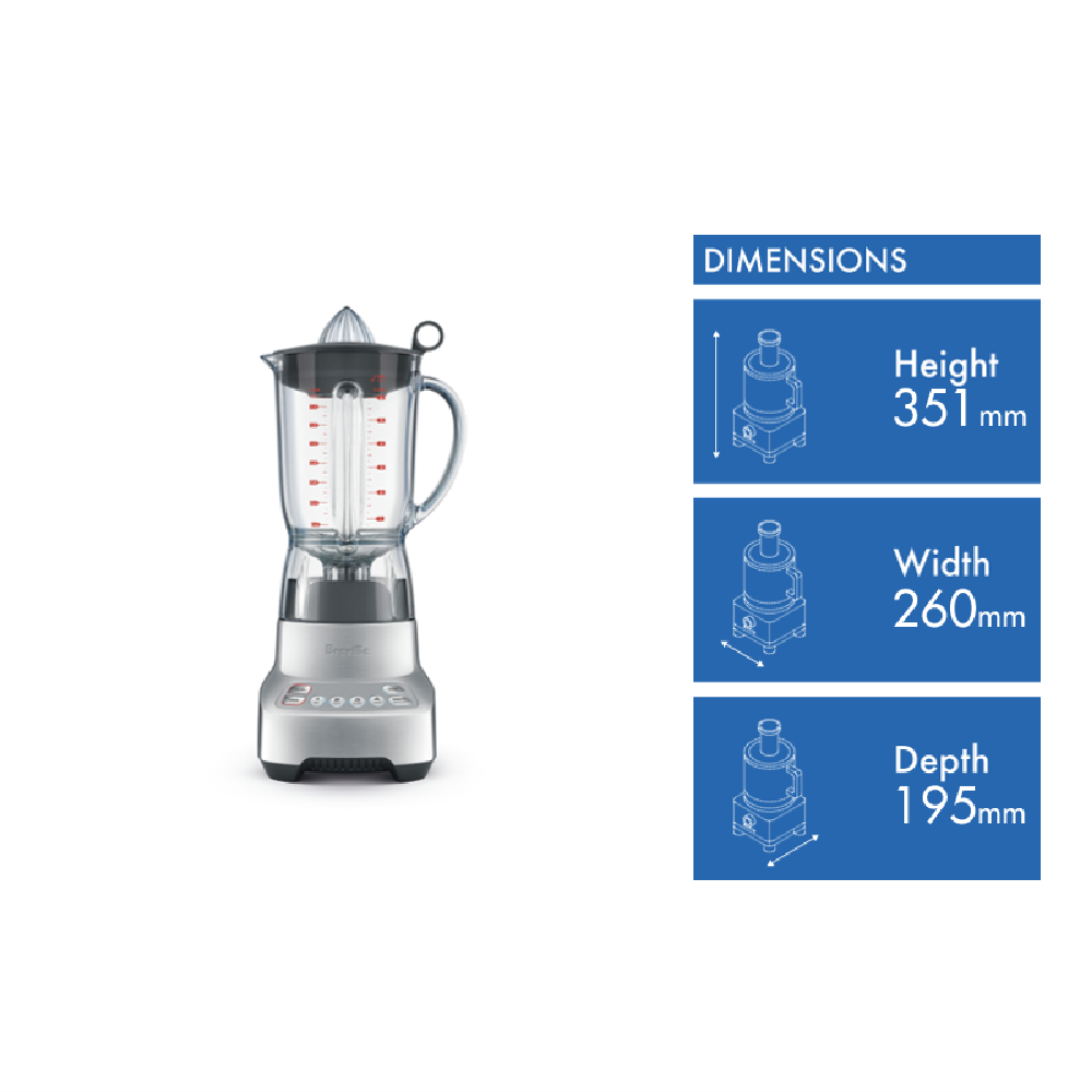 Materials Heavy Duty Die-cast Metal Base, Stainless Steel Blades, BPA-Free Tritan Jug, Tight Fitting Breville Assist Lid