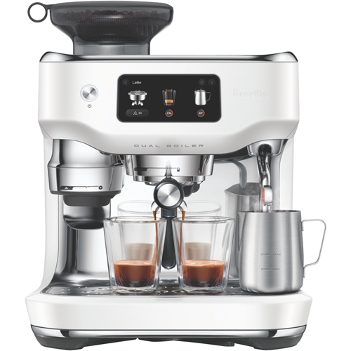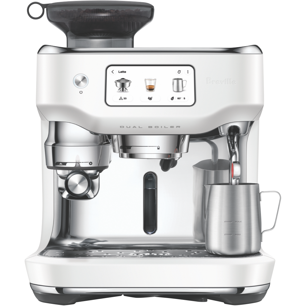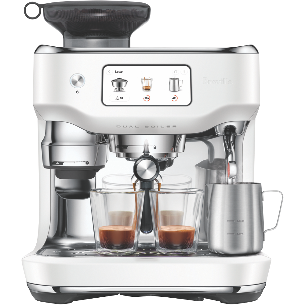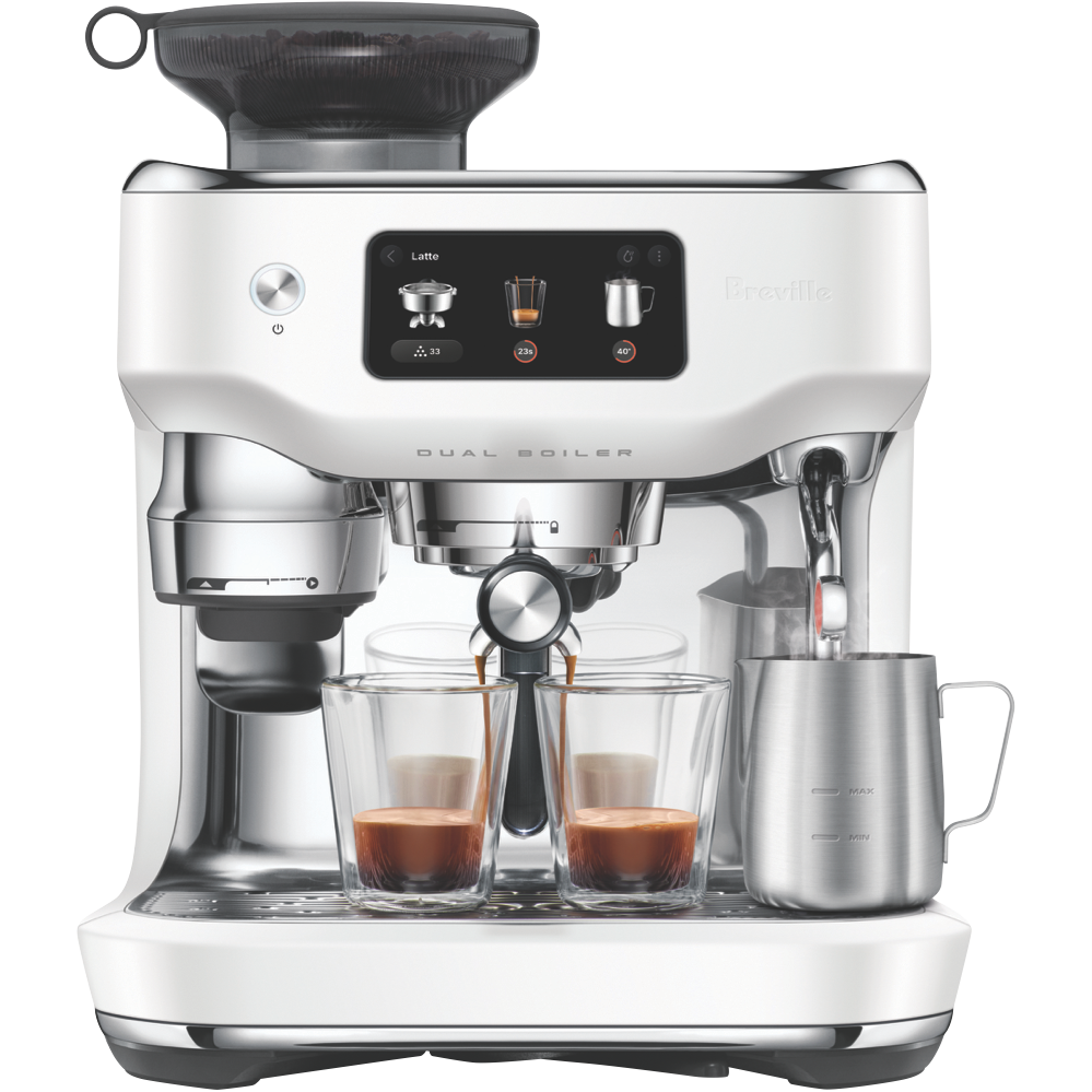 Additional Features Electronic Grind Adjust, Brew Customisation, Auto Puck System, Auto mode for automation at every stage or a hands on barista experience with Manual mode, 18-22g Precision puck, Powerful stainless steel dual boilers to extract the perfect espresso while steaming milk simultaneously, Auto Dial In System continually senses and monitors each shot for under or over extractions, automatically adjusting grind settings to help improve consistency and taste, Professional 58mm stainless steel portafilter, Breville%2B Coffee App, Quad Core Processor, Heated Cup Tray