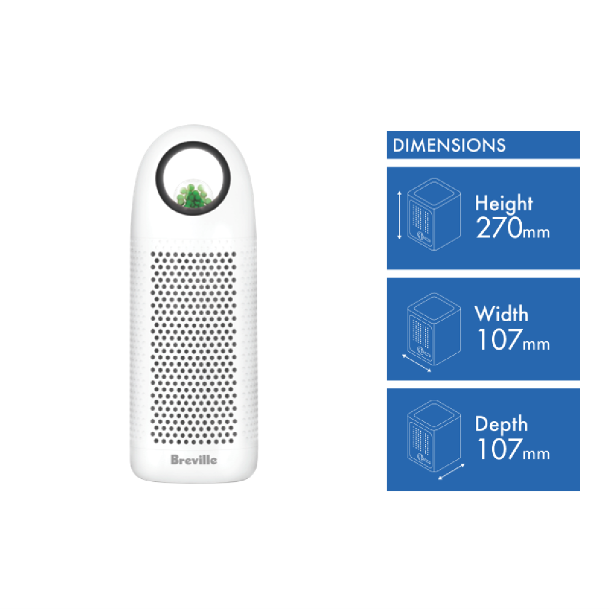 Refresh the air in your home with the Breville Re-Fresha Kit. This white dehumidifier from the Re-Fresha family absorbs and dries moisture with 45W of power suitable for enclosed spaces like cupboards drawers and bags. With absorbing and drying modes 360 degree air inlets and auto shut-off when full the Re-Fresha Kit prevents mold bacteria and musty odors for cleaner fresher indoor air. Measuring 270mm x 107mm x 107mm the portable unit dries itself in the included base in just 2 hours allowing you to reuse it again and again. Equipped with an elastic cord for hanging the Re-Fresha Kit provides an economical way to banish dampness and humidity. Covered by a 2 year warranty this innovative Breville dehumidifier brings effective moisture control to any room. LAD100WHT is the manufacturer's part number of this product.