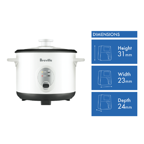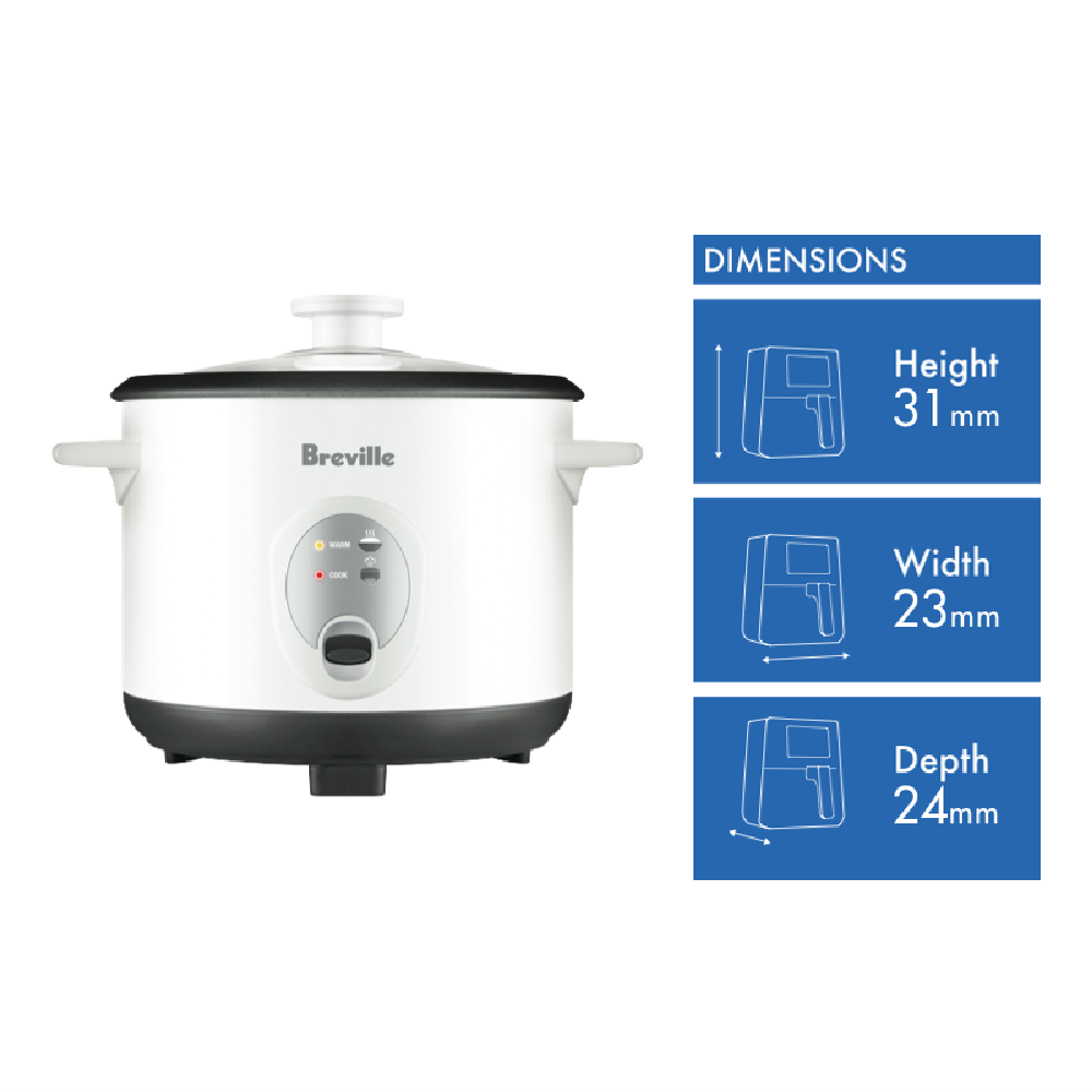 This Breville rice cooker has an 8 cup capacity so you can make enough rice for your family and guests alike. Its removable bowl lets you clean easier. Also the Breville LRC210WHT features a white finish. It's good for cooking any type of rice perfectly.