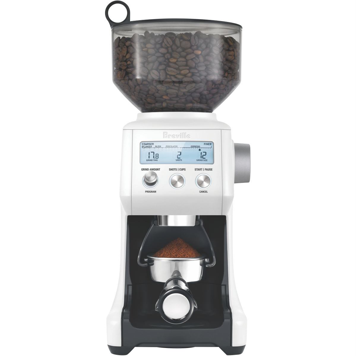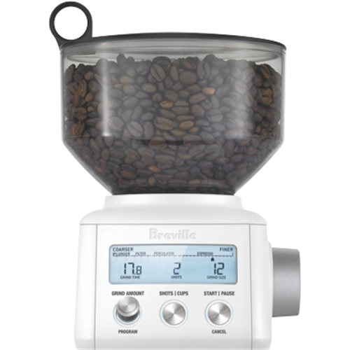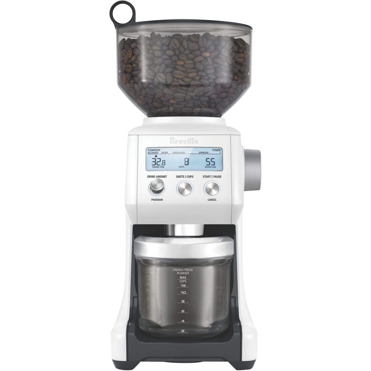 Want to grind coffee beans like a pro? This Breville Smart Grinder Pro in Sea Salt makes it easy. With 60 grind settings you can get the perfect consistency for any brew method. The 450g removable bean hopper lets you switch between different beans without hassle. Use the Dosing IQ tech to get just the right amount for your cup or shot. The LCD display keeps you in control while the dose pause function lets you adjust mid-grind. It even comes with two grinding cradles for dosing directly into espresso filters. Plus the air-tight container keeps your grounds fresh. At 389mm tall 160mm wide and 214mm deep it won't hog counter space. Backed by a 2-year warranty this 2.78kg grinder is a solid choice for coffee lovers. Model number: BCG820SST.