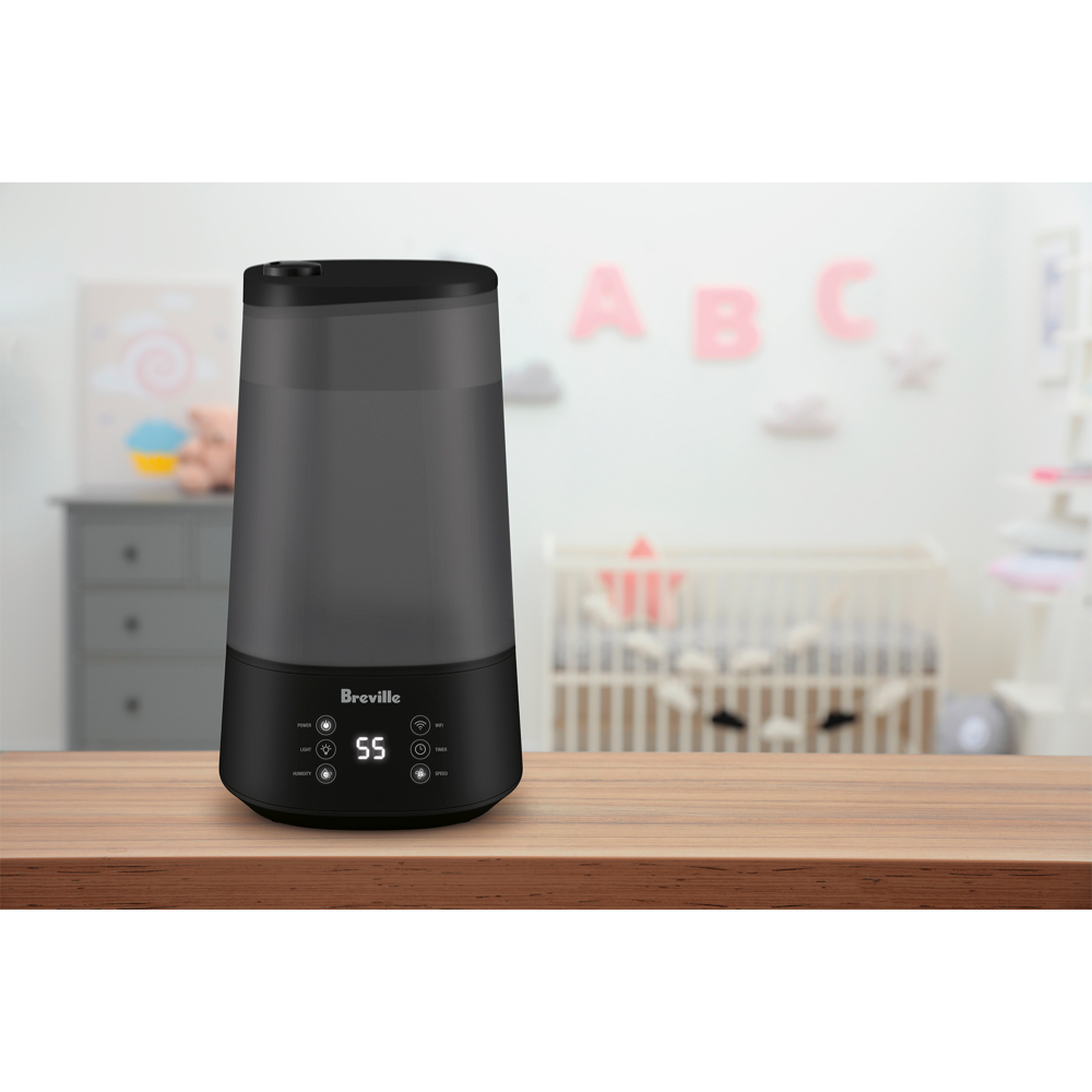 The Smart Mist Glow Connect humidifier seamlessly blends cool mist ultrasonic technology with a modern design that fits perfectly into any room up to 40m² and with the Breville Home Connect app you can control the humidity levels of your home remotely.