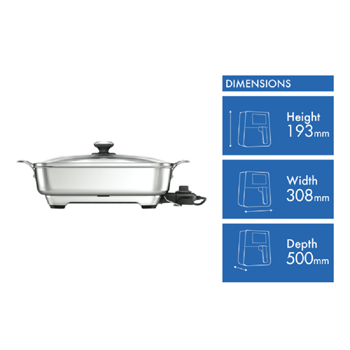 Take frying to new heights of convenience and versatility with the Breville The Thermal Pro Stainless Frypan. This electric frypan features a generous 30cm cooking surface and 2400W of power for fast even heating while the durable stainless steel construction ensures lasting performance. The adjustable thermostat allows you to precisely control temperatures from 50°C to 300°C so you can cook everything from delicate eggs to crispy bacon with ease. And when you're done cooking the dishwasher-safe removable probe and cooking plate make cleanup a breeze. With thoughtful design touches like the cool touch base and viewing window this frypan makes cooking and monitoring your food safe and simple. So bring restaurant-quality frying into your kitchen with the Breville The Thermal Pro. Fry sauté sear bake roast braise or simmer - this do-it-all frypan is ready to unleash your inner chef. The manufacturer's part number for this product is BEF560BSS. Consider the Breville The Thermal Pro Frypan for hassle-free versatile electric cooking.
