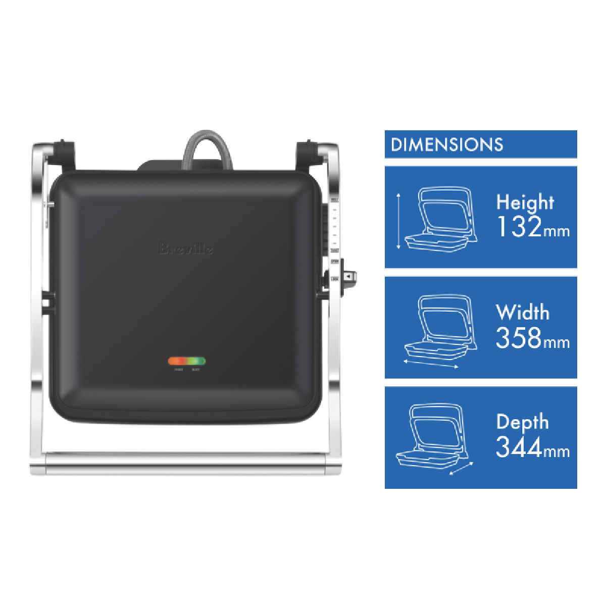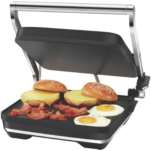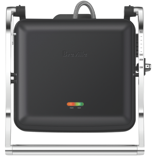A versatile kitchen appliance designed to complement your busy lifestyle the Breville The Toast and Melt Sandwich Grill 4 Slice in stylish Black Truffle makes meal prep effortless. With 2200W of power this innovative sandwich press features a floating hinge and easy height adjustment so you can toast thick or thin slices to perfection. The non-stick cooking plates have a clever ribbed design that seals in flavor while allowing excess fat and grease to drain away for healthier grilling. Thanks to the spacious 4 slice capacity you can craft mouthwatering pressed sandwiches for the whole family or a quick breakfast on the go. Compact and easy to store this quality Breville sandwich maker will be your new go-to for fast delicious sandwiches and paninis. Conveniently equipped with an integrated drip tray and cord storage clean-up is a breeze. Craft restaurant-worthy pressed sandwiches at home with Breville's versatile sandwich grill. The manufacturer's part number for this product is LSG545BTR.
