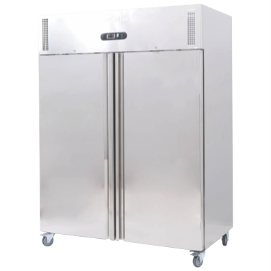 For the demanding needs of commercial kitchens our UC1300SD-NR 2-Door Gastronorm Stainless Steel Storage Fridge is the ultimate solution. Designed with a powerful fan-forced cooling system rest assured that your food will stay fresh for longer regardless of its placement within the fridge. The internal LED lighting illuminates every corner making it a breeze to find products even in low-light conditions. Enjoy the flexibility and convenience of 5 adjustable stainless steel rails and shelves perfectly suited for 2/1 Gastronorm trays. Plus enjoy reduced energy bills thanks to the fridge s solid stainless steel exterior and insulation on all sides and the use of natural refrigerant.