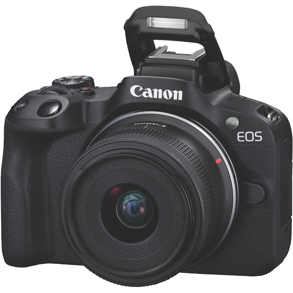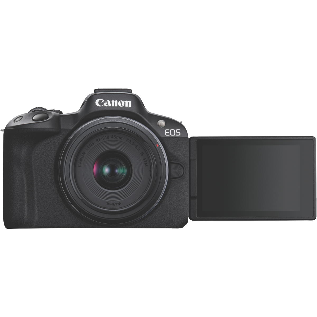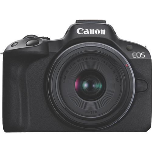 Capture life's precious moments with the Canon EOS R50 Single Lens Kit featuring an everyday zoom lens to help you take stunning photos and videos. This lightweight DSLR camera comes equipped with an 18-45mm RF-S lens delivering impressive optical zoom capabilities in a compact form factor. With a focal range equivalent to 29-72mm in 35mm format you can capture wide landscape vistas or get up close to your subject making this an ideal walkaround lens. The fast f/4.5-6.3 maximum aperture provides beautiful background blur and low-light performance while the 7 aperture blades produce attractive bokeh effects. Plus with up to 4 stops of image stabilization in the lens and up to 6.5 stops when paired with compatible R Series cameras you'll get tack sharp images and steady videos even when shooting handheld. Weighing just 130g the 18-45mm lens lets you travel light without compromising on image quality. So whether you're capturing candid moments with friends stunning landscapes on vacation or your child's next school play the Canon EOS R50 helps you take your photography to the next level. The manufacturer's part number for this product is R50KIS.