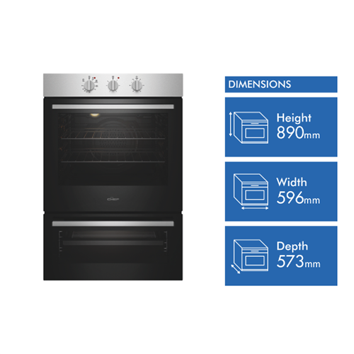 • Electric double oven 60cm 72 Litre main 38 Litre second