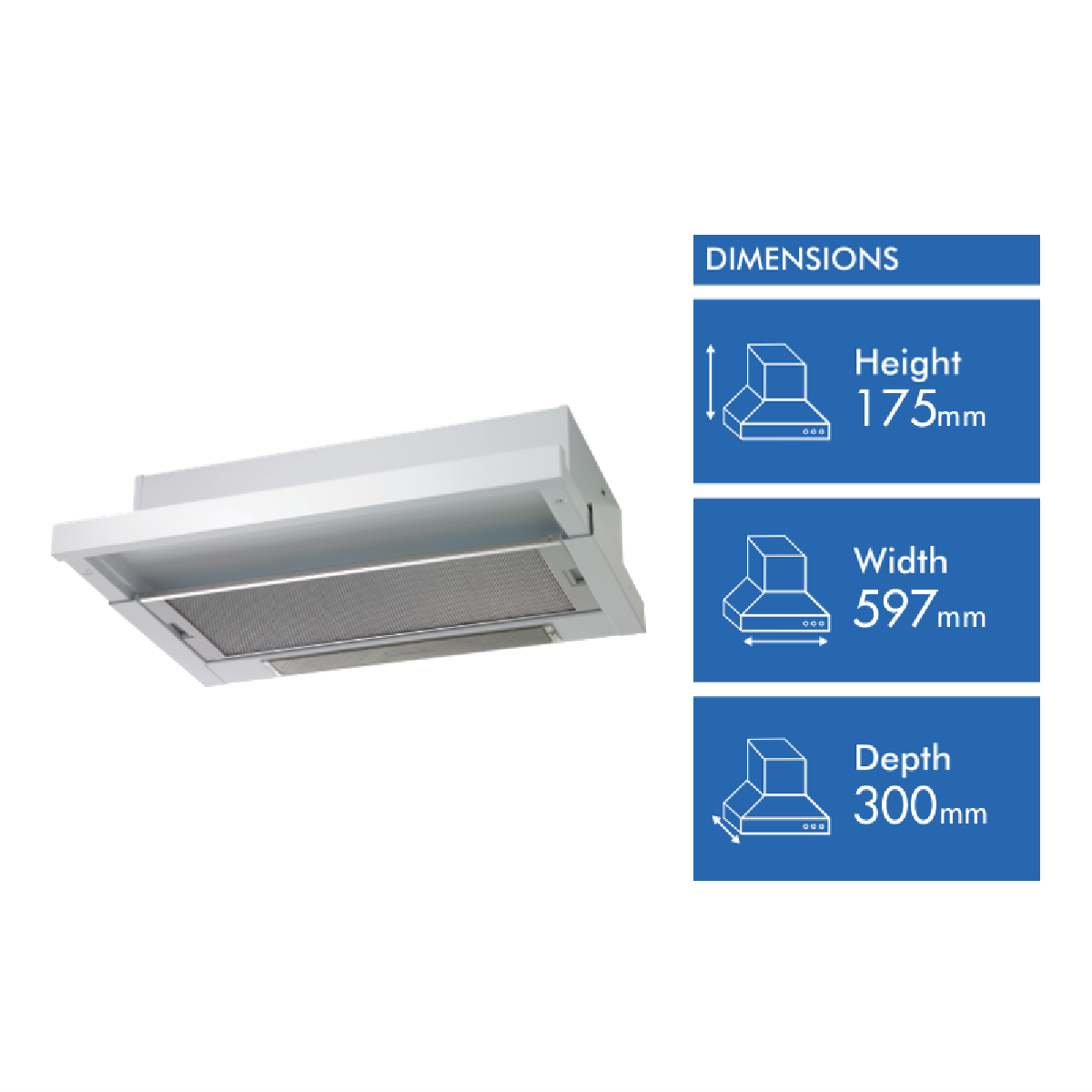 Keep your kitchen smelling fresh and clean with this Chef 60cm Pull-out Rangehood White CRR612WB. Two fan speeds with a maximum airflow of 200 m3/hr provide the right extraction level to suit every style of cooking. Auto-activated push-pull controls keep operation seamless. Cook and see your meal clearly with Chef's bright LED lighting that is both low energy consuming and long lasting. Dishwasher-safe mesh grease filters allow for easy cleaning to ensure your rangehood always runs optimally and continues to extract fumes and odours with every meal.