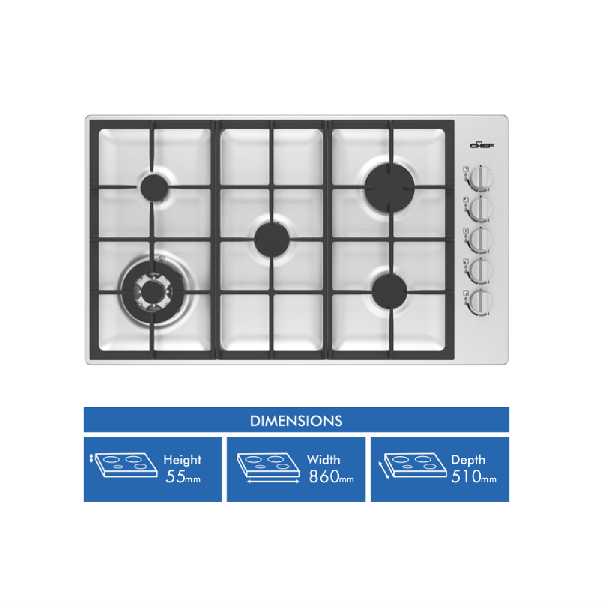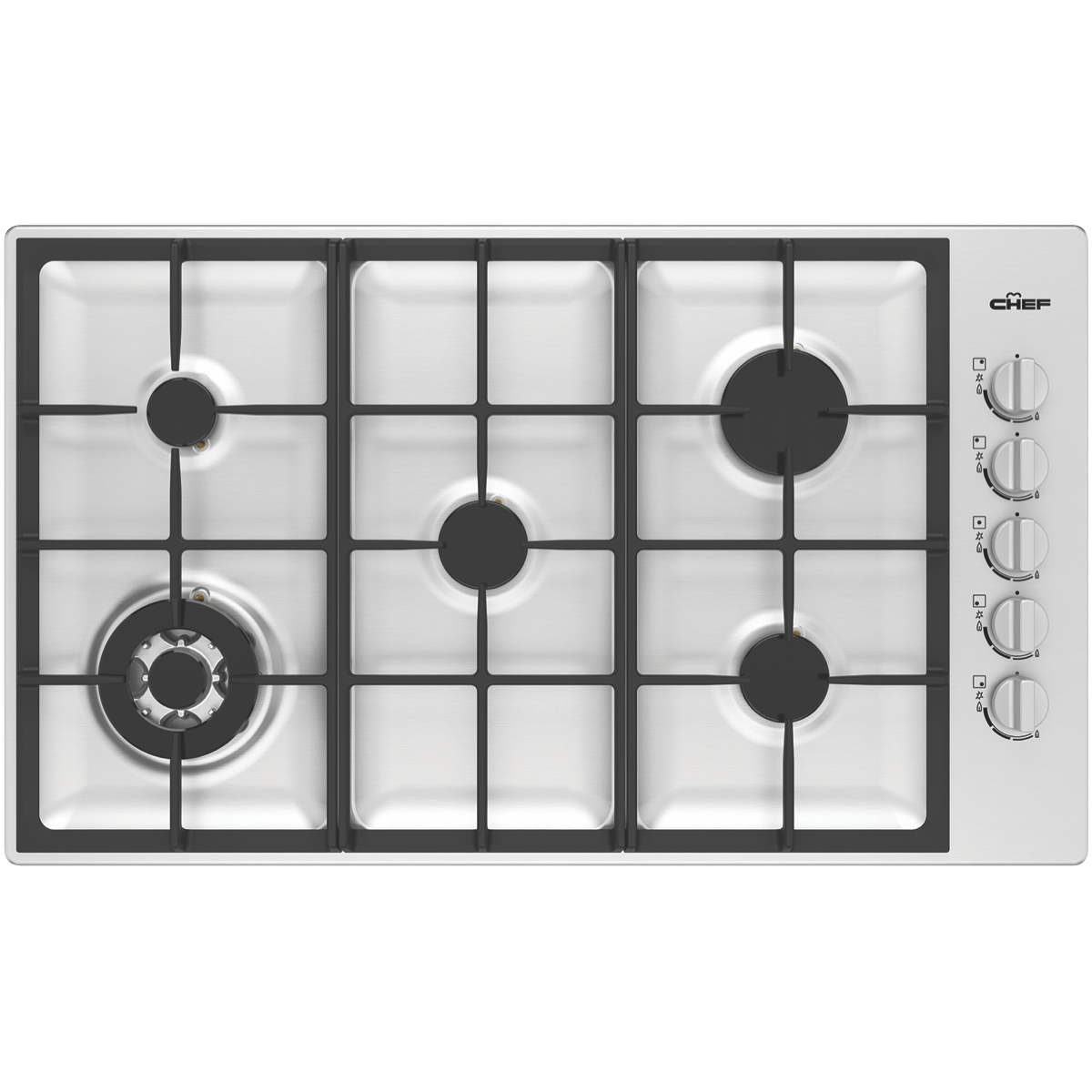Experience cooking freedom thanks to the spacious layout of this Chef 90cm Gas Cooktop Stainless Steel CHG954SC with four cooking zones. Create high-powered stir fries on the wok burner as side dishes simmer and boil in pots and pans of various sizes. Controls are positioned to the side for safety; eliminating the need to reach over hot pots and pans whilst offering quick and easy changes to the heat intensity at any given time. Experience one-push start ignition every cook. Plus Chef's cast iron trivets keep your pots and pans stable as well as allowing for ease of movement between burners. For peace of mind this Chef cooktop has a Flame Failure safety feature that automatically shuts off the gas supply if the flame is unexpectedly extinguished.