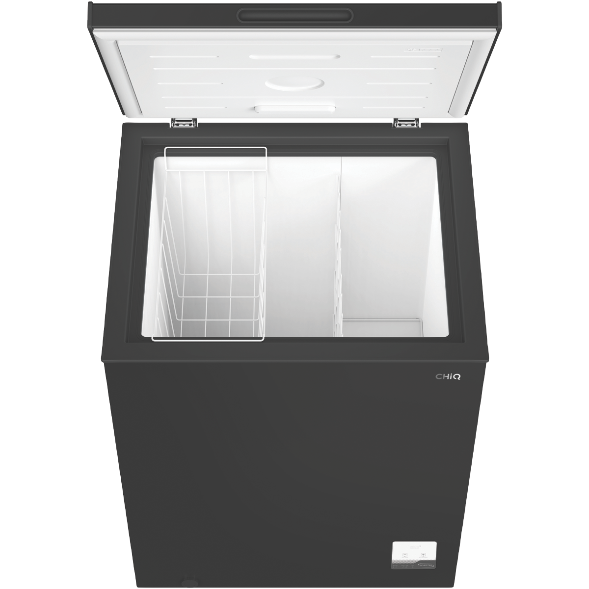 Step into a world of cold storage convenience with the CHiQ 142L Hybrid Chest Freezer. This chest freezer's generous 142 litre capacity provides ample space to stock up on frozen foods. The manual defrost functionality allows you to manually defrost the freezer when needed while the top opening door enables easy access to your frozen items. At 635mm wide 835mm high and 556mm deep this chest freezer fits well in most spaces. The interior LED light illuminates the contents making it easy to find what you need. The sliding removable basket and wire mesh partition help you organise foods neatly. Keep little hands out with the handy child lock feature. Exclusive to The Good Guys this freezer is built to last with its durable construction. The CHiQ chest freezer performs efficiently too boasting a 5.5 star energy rating for money savings. Maintain the perfect temperature for your frozen goods with the electronic control and inverter system. Bring convenient cold storage to your home with the CHiQ 142L Hybrid Chest Freezer. The manufacturer's part number for this product is CCF141BE.