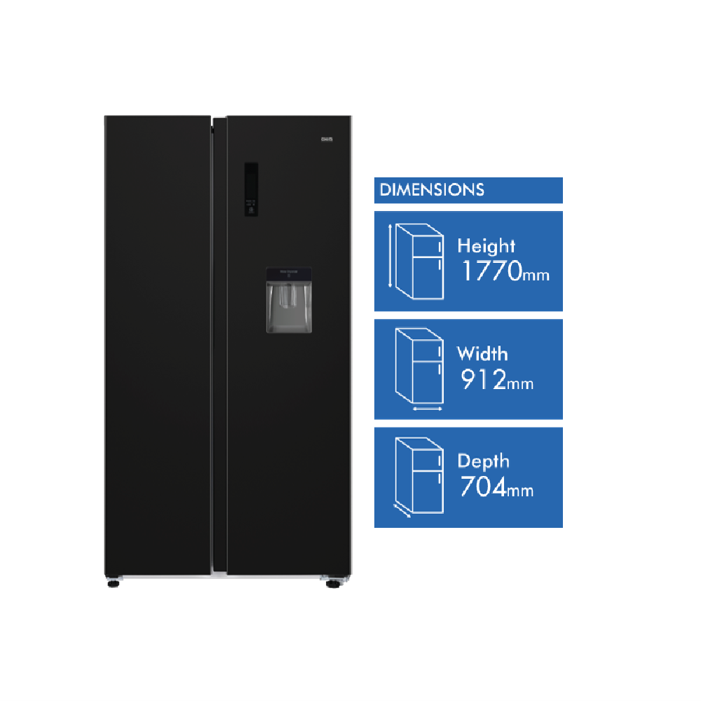 Tired of your fridge being too small or not keeping your food fresh? Check out the CHiQ 559L side by side refrigerator (model CSS556NBD4E). With a spacious 559L total capacity including a 359L fridge and 200L freezer you'll have plenty of room for all your groceries. The sleek black design will look great in any kitchen. This fridge is packed with features like an inverter system frost free operation multi air flow LED display with control door alarm internal LED light fast freezing and even a holiday mode. Plus it comes with a convenient 5.5L non-plumbed water dispenser. Enjoy peace of mind with the 3 year manufacturer's warranty.