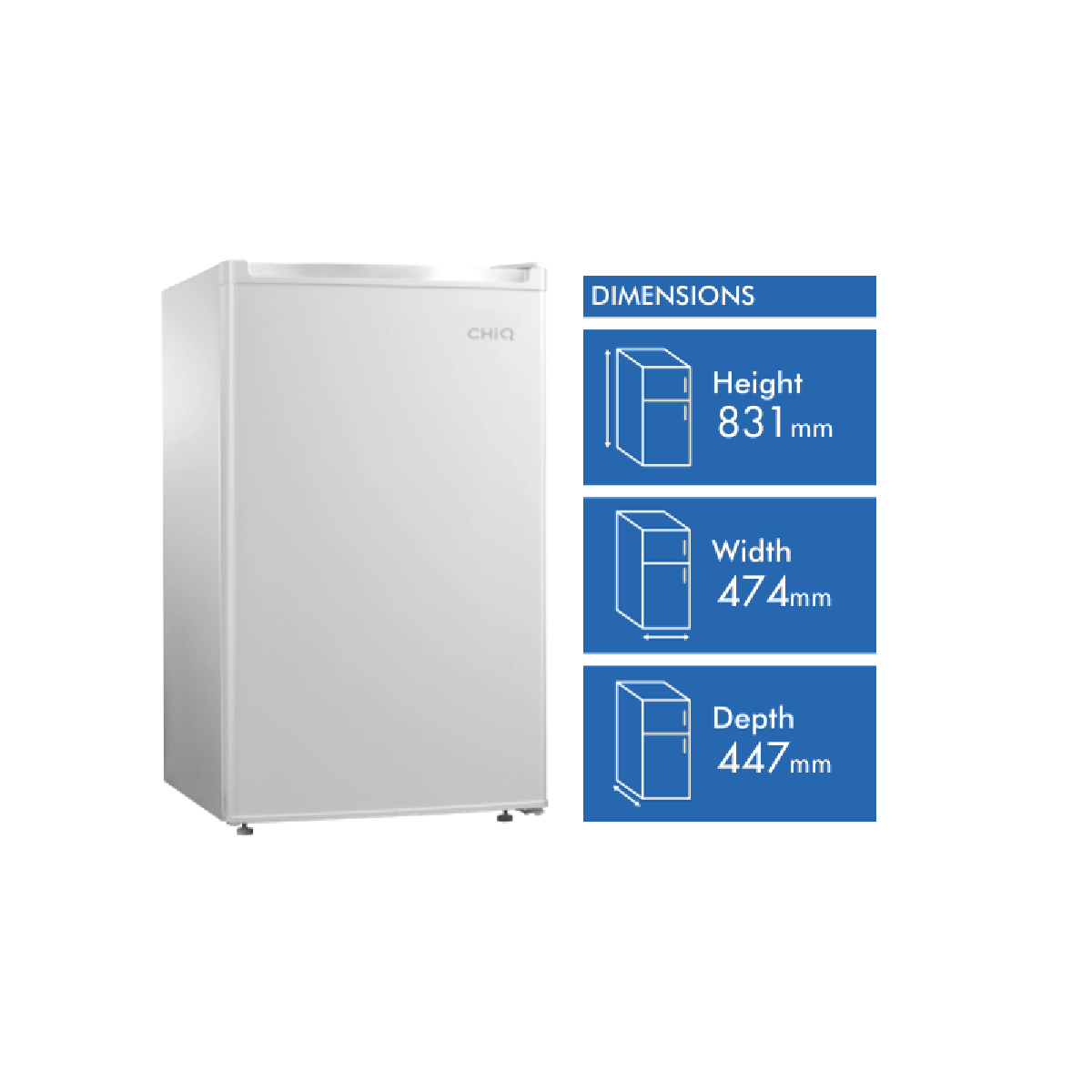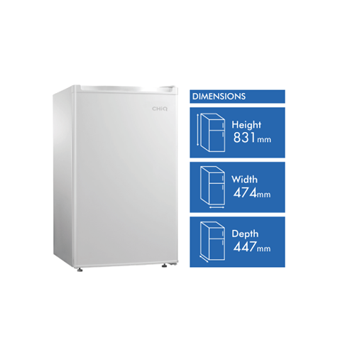 Bring versatile refrigeration to your home bar with the CHiQ 90L Bar Fridge. This white bar fridge offers 90 litres of cooling capacity in a compact 474mm width x 831mm height x 447mm depth frame. The reversible right-hand hinged door and adjustable feet provide flexible installation options while the manual temperature control lets you easily set the ideal chilling temperature. With its 2.5 star energy rating this fridge helps reduce your energy bills without compromising on cooling performance. Additional features like the door basket provide extra storage for drinks and snacks. With its sleek white finish this bar fridge adds a modern touch to home bars and kitchens. Whether you need more refrigeration or want to keep drinks chilled for easy access this CHiQ bar fridge is the perfect solution. Bring the convenience of cooling to your home with this quality affordable bar fridge. The manufacturer's part number for this product is CSR090DW. Add chilled storage and style to your home bar with the CHiQ 90L Bar Fridge today.