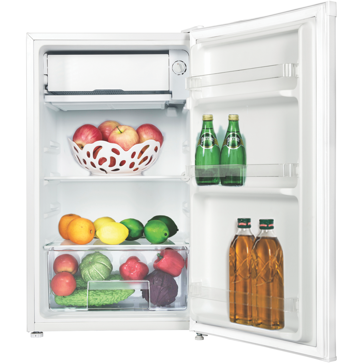 • Reversible door, manual temperature control, adjustable feet