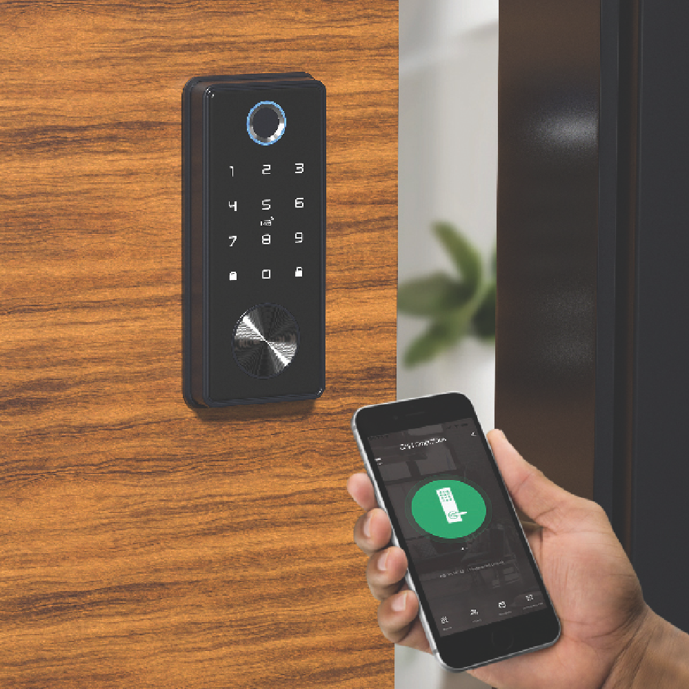 Secure your home with this Smart Deadbolt Lock featuring both NFC and biometric scanning for truly keyless entry. Simply use your fingerprint tap your phone or control it remotely through the SmartHome app on your smartphone. The sleek black design adds a modern touch to your door while providing serious security. Battery operated with 4 AA batteries (not included) this lock works with both Android 6.0+ and iOS 11.0+ devices so it's compatible with most smartphones. Installation is straightforward with everything you need packed into the compact box. Backed by a 1-year manufacturer's warranty this smart lock (model CSH-SLBIO-870) gives you peace of mind and convenience in one package.