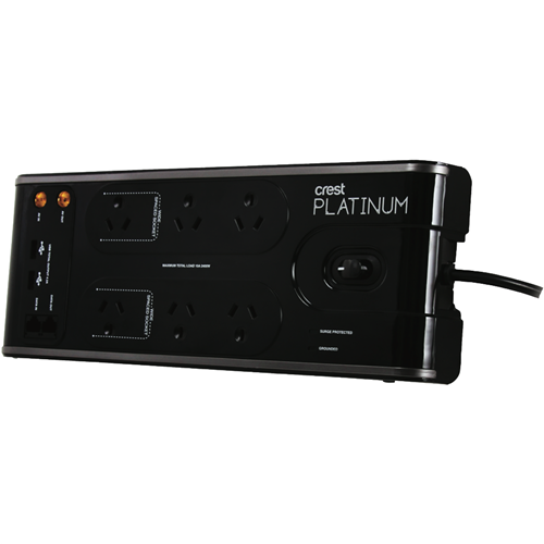 Safeguard your electronics and appliances from power surges and spikes with the Crest 6 Socket AV Surge Protect Powerboard. This powerboard features six widely spaced outlets to accommodate chunky plugs and transformers along with advanced 240V surge protection up to 3600 joules to keep your devices safe from electrical damage. The fire proof MOV protection provides an extra layer of safety. With a 10 year warranty for peace of mind this powerboard is the ideal solution for protecting home entertainment systems computer equipment small kitchen appliances and more. The manufacturer's part number for this product is PWU06905C. Shop now for a surge protector you can rely on to guard your gadgets from power fluctuations.