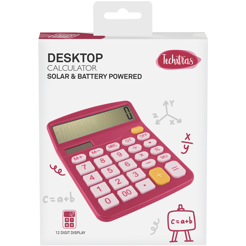 Need a handy desktop calculator that adds a pop of colour to your workspace? This pink Techxtras Desktop Calculator is perfect for everyday calculations at home or in the office. The bright pink design makes it easy to spot on your desk while adding a fun touch to your stationery collection. It handles all your basic math functions with ease whether you're balancing your budget or checking receipts. Compact enough to keep within reach without taking up too much space. Model number: MBP12030.