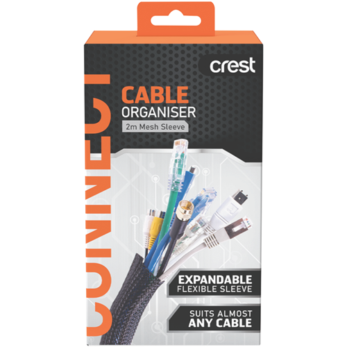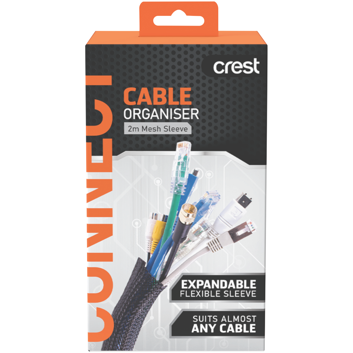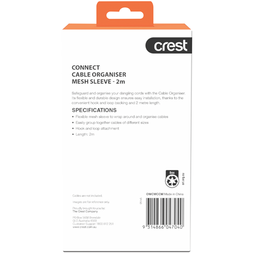 Keep your cables neat and tidy with this Crest Mesh Cord Concealer Sleeve. It's a simple way to manage those messy cables that always seem to tangle behind your desk or entertainment unit. The mesh design makes it easy to add or remove cables whenever you need to while still keeping everything organized and protected. This cable management solution comes with a 1-year manufacturer's warranty for peace of mind. Part number: OWCMCCM.