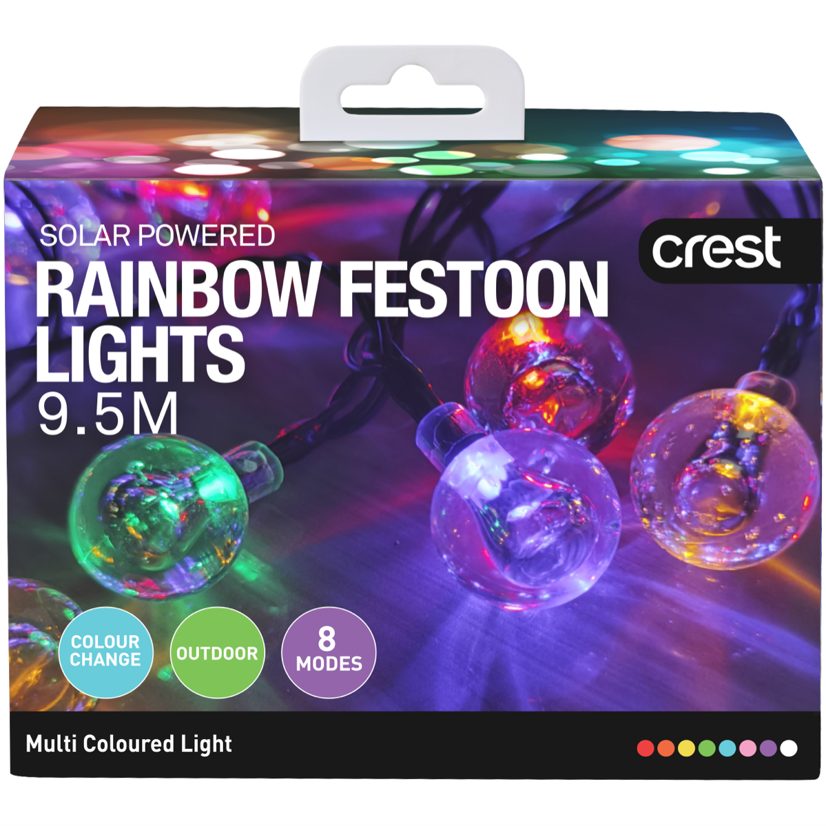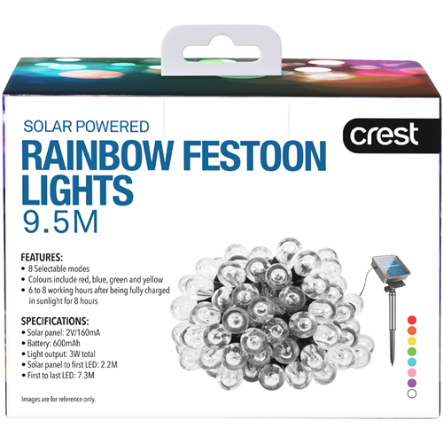 Brighten up your space and create a festive ambiance with the Crest Multicoloured Festoon Lights. These 9.5-metre string lights feature multicoloured bulbs that add a fun decorative touch to any indoor or outdoor setting. Whether you hang them across your patio over your bed or around a window these lights are sure to illuminate any room or area with a warm inviting glow. The wide range of colours like red green yellow and blue allow you to match any theme or décor. Made with durable plastic sockets and coated lead wiring these weather-resistant lights are built to last for many seasons. Covered by a 1-year manufacturer's warranty you can hang these festoon lights with confidence knowing they are made to the highest quality standards. Their plug-in design also makes them easy to install and use on demand. Light up your next gathering or occasion with the bright vibrant colours of the Crest Multicoloured Festoon Lights. These lights will become your new go-to decoration for creating ambiance and a festive mood. The manufacturer's part number for this product is CLFLSL95W. Check them out today!