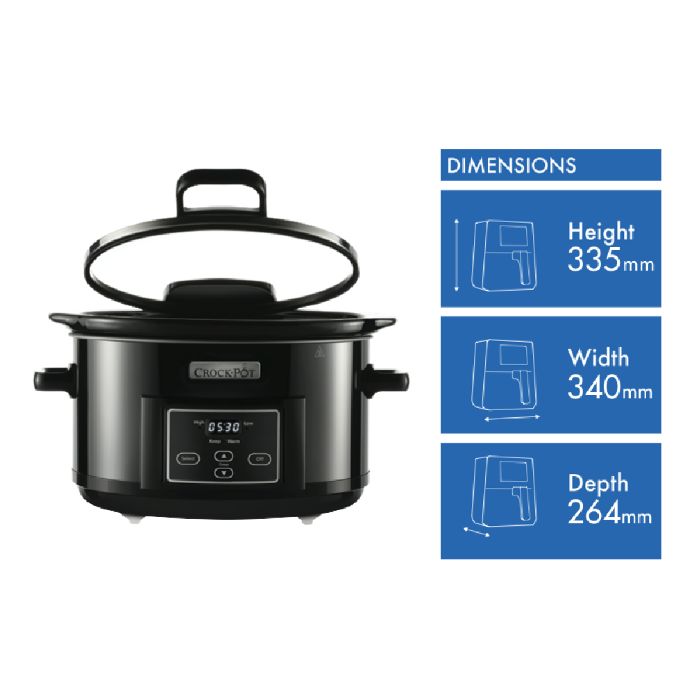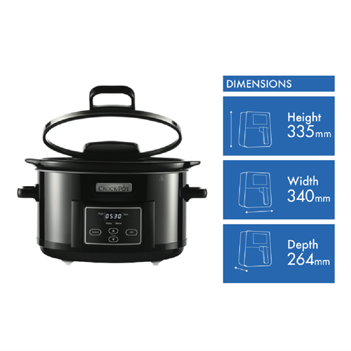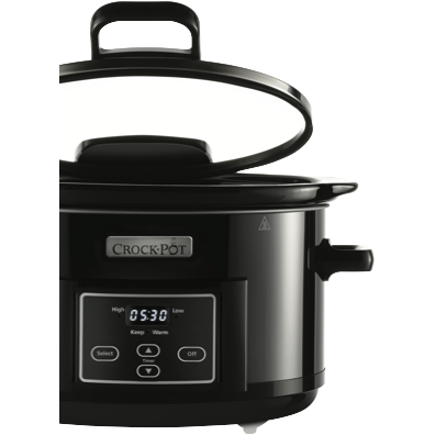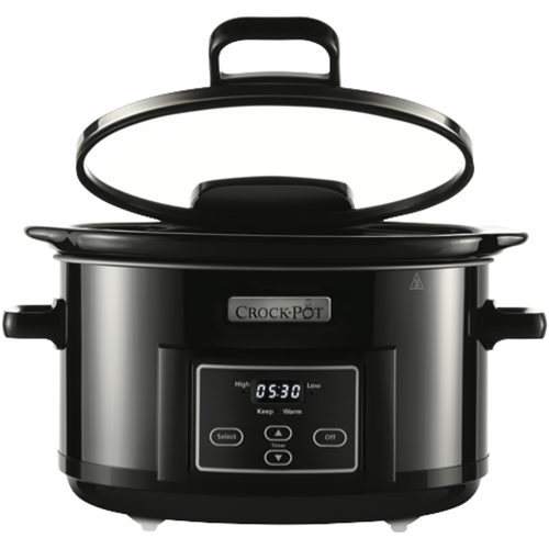 Simplify your cooking with the Crock Pot 4.7L Hinged Slow Cooker. This versatile slow cooker features a round ceramic pot and hinged lid for effortless serving and clean up. With a generous 4.7 litre capacity it comfortably serves four people. Set cooking times from 30 minutes up to 20 hours on the digital control panel. Choose from High Low or Auto Keep Warm settings to achieve the perfect results. The lid opens with one hand for safe spill-free serving. Both the dishwasher-safe pot and lid make cleaning up after dinner a breeze. Cook stews curries soups and more with ease thanks to the even heating of the round crock pot shape. With a 90cm cord length you can conveniently use this slow cooker anywhere in your kitchen. Rely on this user-friendly slow cooker from a trusted brand to deliver delicious family meals. The manufacturer's part number for this product is CHP550. Consider the Crock Pot 4.7L Hinged Slow Cooker for fuss-free home cooking today.