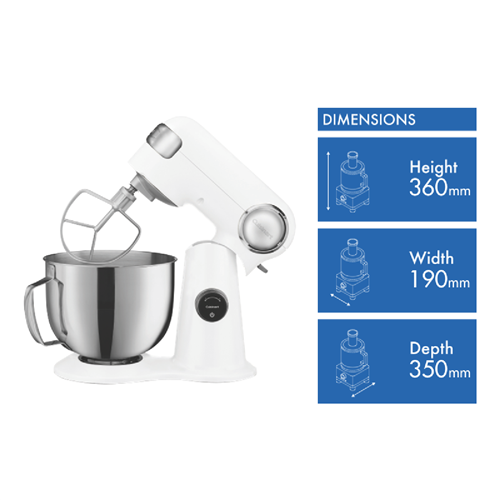 Additional Features LED display, Countdown timer, Pre-programmed recipes, attachments hub allows turning the mixer into an all round appliance, optional hub attachments include: pasta extruder, pasta roller and cutter, ice-cream maker and more