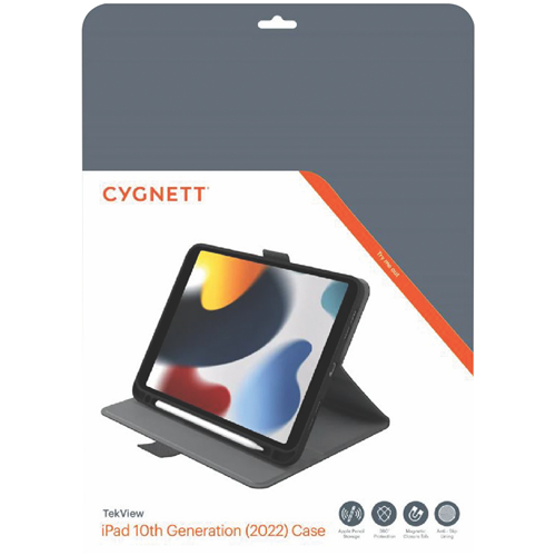 This sleek Cygnett iPad 10.9 10th Gen TekView Case in classic black provides robust protection and convenient functionality for your Apple tablet. The lightweight yet durable design features a flexible back cover and secure magnetic closure to shield your device from bumps and scratches. With precise cutouts you'll still have full access to ports buttons and cameras for uninterrupted use. The built-in stand allows for comfortable hands-free viewing in landscape or portrait orientations. Take your iPad anywhere with confidence knowing this case offers reliable defense against daily wear and tear. The integrated pen holder keeps your Apple Pencil securely stored and readily available when inspiration strikes. Enjoy a comfortable grip and seamless usability with the Cygnett TekView Case the perfect iPad accessory for work or play. The manufacturer's part number for this product is CY4391TEKVI. Discover how this case can enhance your iPad experience today.