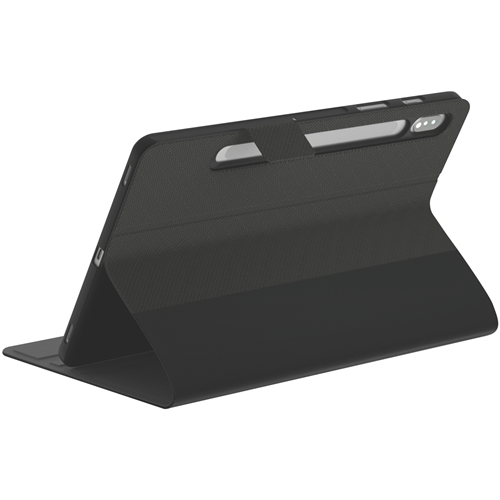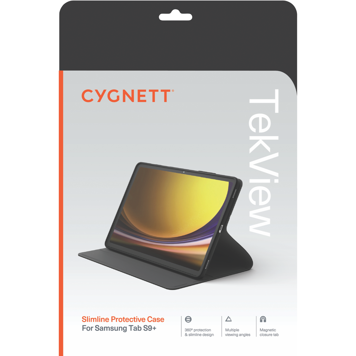 A stylish yet functional Samsung Galaxy Tab S9+ case that keeps your tablet safe while enhancing your experience. This slim black and grey Cygnett TekView case provides drop proof protection and built-in storage for the S Pen so you can keep your stylus secure and easily accessible. With its convertible stand design you can prop up your Tab S9+ in portrait or landscape mode for hands-free viewing. Weighing just 50g the durable shell adds minimal bulk while protecting your device from scrapes and falls. Enjoy uninterrupted use of your tablet's features through precisely cut openings. Measuring 293mm in height 226mm in width and just 0.51mm in depth the Cygnett TekView case is custom-fitted for the Galaxy Tab S9+. Give your high-tech tablet the protection it deserves with this innovative case that converts to a stand and stores your S Pen. Covered by Cygnett's two year warranty for added peace of mind. The manufacturer's part number for this product is CY4761TEKVI. Check out this Galaxy Tab S9+ case today to keep your tablet safe in style.