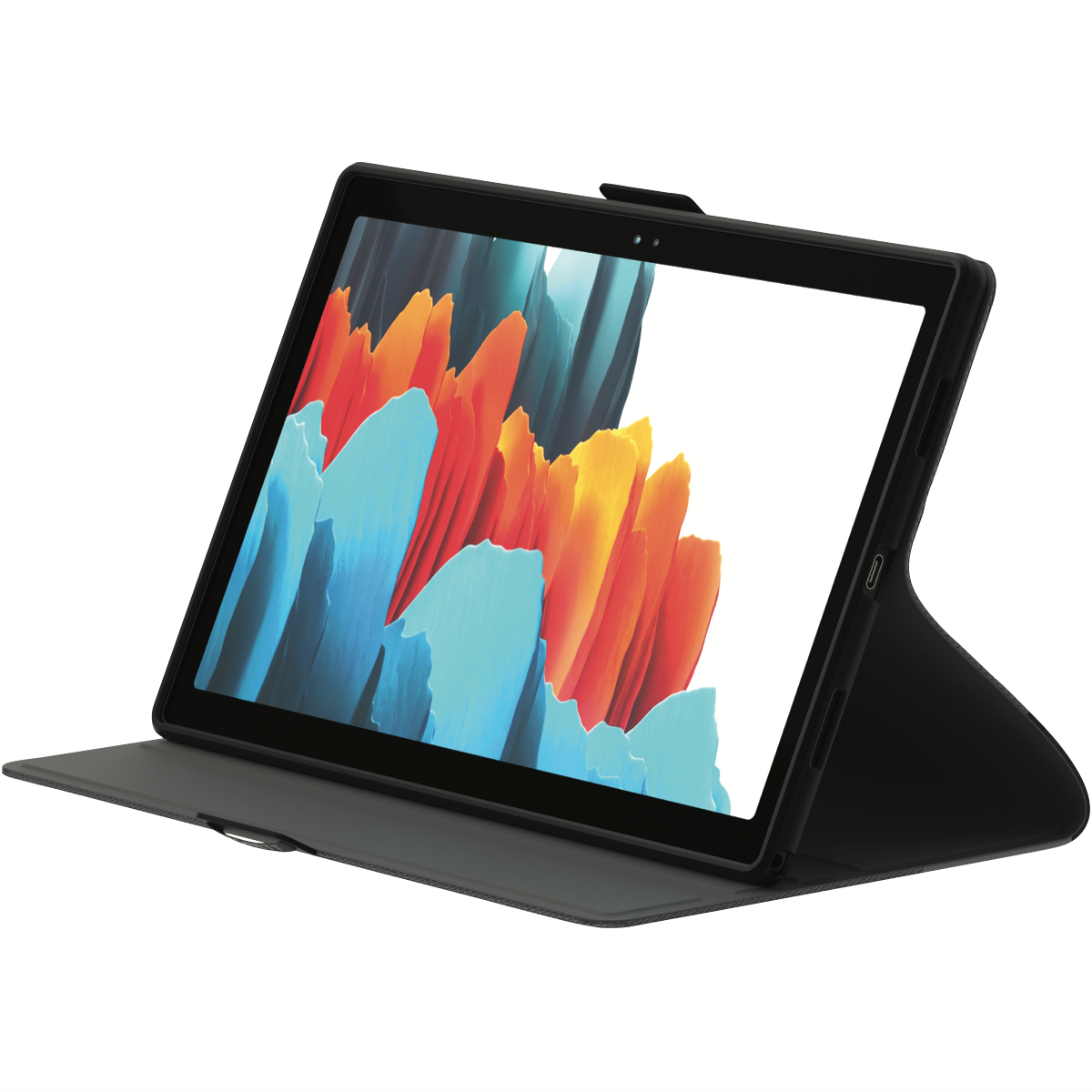 Safeguard your Samsung Tab A8 10.5 tablet with the slim durable Cygnett TekView Case. Crafted in black this lightweight case protects your device from bumps and scruffs while maintaining full functionality. The convenient design enables you to prop up your tablet in landscape or portrait mode for comfortable typing or hands-free video watching. Built for your Samsung Tab A8 10.5 the custom fit ensures a secure hold while still providing easy access to all ports buttons and cameras. The integrated magnetic strips allow you to transform your case into a stand enabling landscape or portrait viewing angles. So keep your tablet protected in style with the Cygnett TekView Case for Samsung Tab A8 10.5. The manufacturer's part number for this product is CY4012TEKVI. Protect your tech in style with this slim yet protective case.
