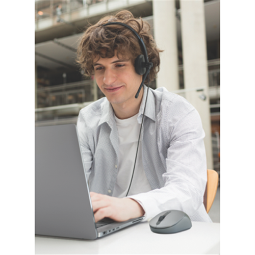 This Stereo Wired Headset gives you clear audio through its comfortable design perfect for long computer sessions. The uni-directional microphone rotates a full 270 degrees to accommodate both left and right-handed users making it versatile for any setup. With its practical USB-A connection and generous 2.9-meter cord length you'll have plenty of freedom to move around your workspace. The lightweight 121g design won't weigh you down during extended use and it comes in a sleek black finish that looks professional on any desk. Backed by a 3-year warranty. Model 520-AAWD.