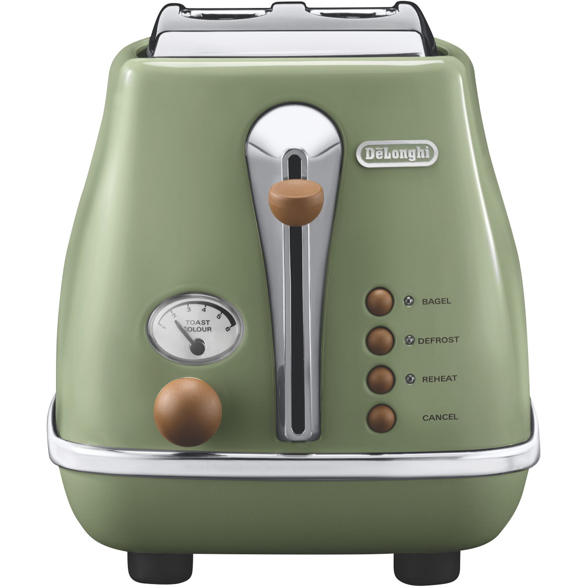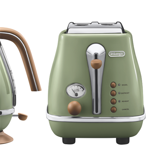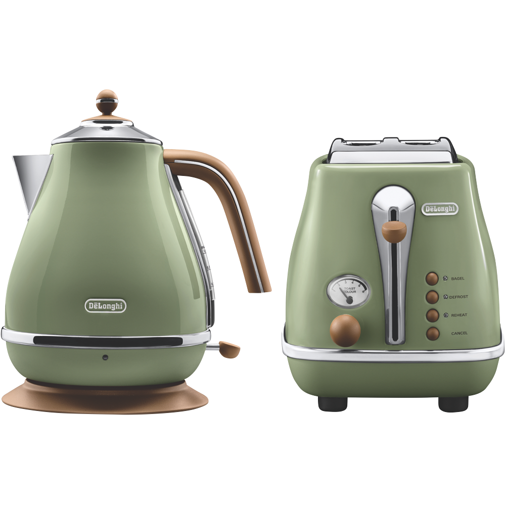 Start your mornings with style using the Icona Vintage Breakfast Pack in green featuring a 1.7L kettle and 2-slice toaster made of stainless steel. The kettle delivers 2200W of power with a convenient 360-degree swivel base while the 900W toaster offers versatility with defrost reheat bagel and cancel functions. You'll have perfect toast every time thanks to the 6 browning settings and the extra-lift position makes it easy to remove smaller bread slices without burning your fingers. Backed by a 2-year warranty. Model CTO2VGR-KBO2.