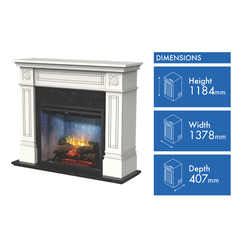 Bring modern warmth and ambiance into your living space with the Dimplex 2kW Osbourne Mantle Electric Fireplace. This electric fireplace features Revillusion flame technology that creates the illusion of a realistic flickering fire for cozy atmosphere without the mess and hassle of wood. The full concrete-look firebox lined with hand-painted logs offers 1378mm width by 1184mm height by 407mm depth of heating capacity with two heat settings and an adjustable thermostat for customized comfort. Brightness and ambient light sensors automatically adjust the lifelike LED flames and downlight ambiance for any time of day. Backed by Dimplex's two year warranty the Osbourne provides modern style with convenience and versatility as a 2 kilowatt electric fireplace suitable for zone heating. Upgrade your interior decor with this electric fireplace designed to be an eye-catching focal point whether alight with flames or turned off when not in use. The manufacturer's part number for this product is OSB20C-AU. Bring stylish warmth into your home this season with the Dimplex Osbourne Mantle Electric Fireplace.