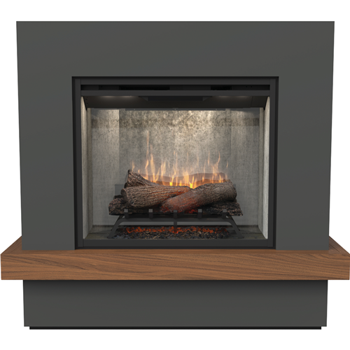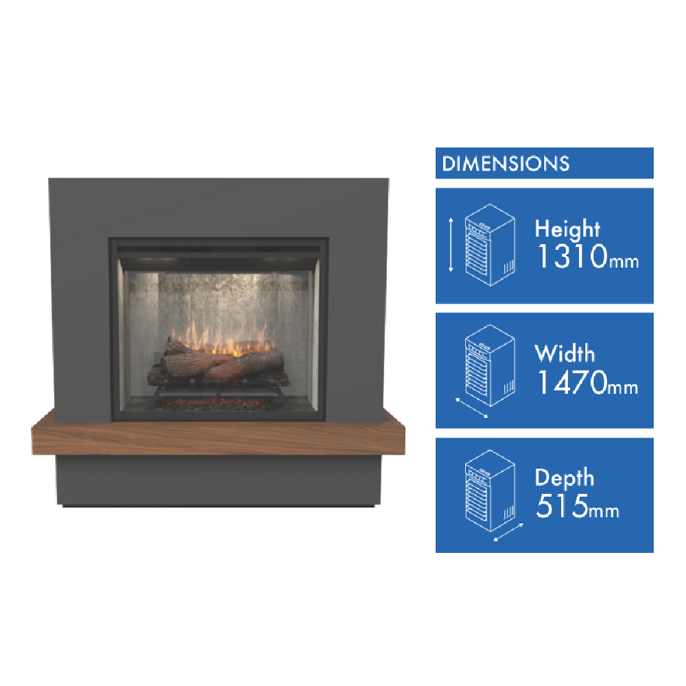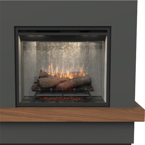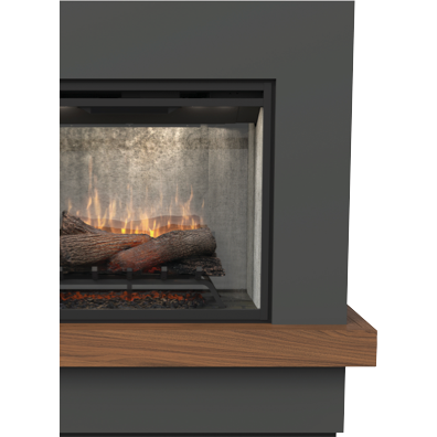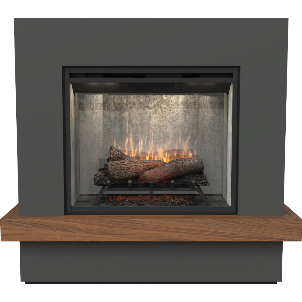 Additional Features Remote control, Full concrete look firebox with log set, Brightness flicker and ambient light sensor, LED Flame effect can be used independently of the heat source, Colour enhancement – adjust the flame base to red or blue