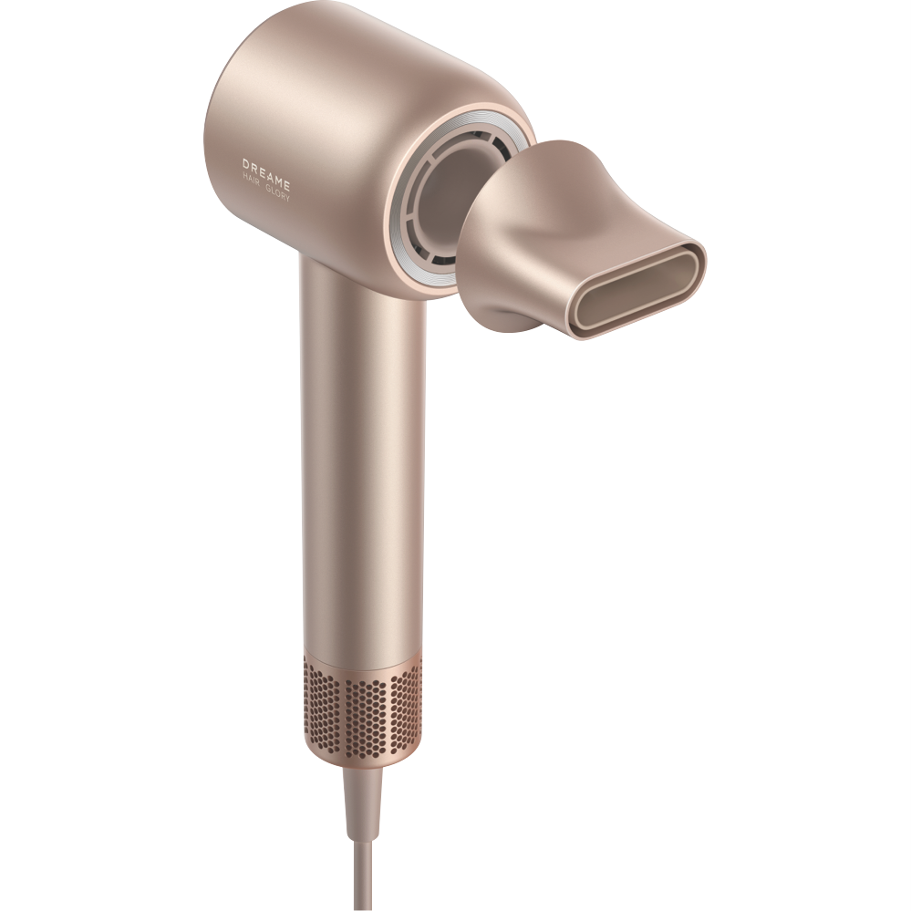 This lightweight Hair Glory Mix High Speed Hair Dryer delivers powerful 1600W drying with intelligent temperature control. Its NTC sensor performs 300 checks per second to maintain a safe 55°C automatically shutting off if overheating occurs to reduce heat damage. The dryer releases 300 million negative ions to neutralize static effectively smoothing your hair and enhancing shine. For an extra touch of luxury it features Perfume Infusion Technology that leaves your hair lightly scented. Comes with interchangeable magnetic nozzles for different hair types and weighs just 0.336kg for comfortable styling. 2 Year warranty. Model DRE-GLORYM-G.