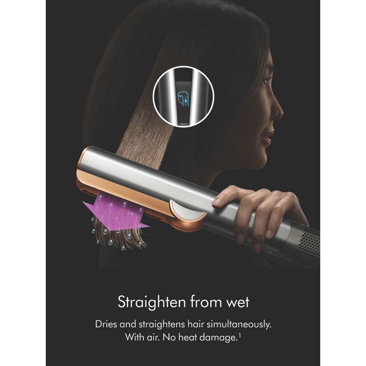 The Dyson Airstrait dryer and straightener senses when there s hair between its arms automatically decreasing airflow when there isn t for quieter more efficient styling. After three seconds of inactivity the device will automatically pause airflow - simply move it to restart a session.