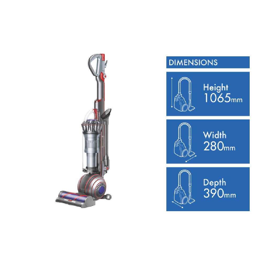 The Dyson Ball Origin Bagless Vacuum (470529-01) Sucks up pet hair fast. Automatically de-tangles. The powerful Motorbar(TM) cleaner head cleans deep into carpets and seals in suction on hard floors. Engineered for homes with pets.Light to manoeuvre the Dyson Ball technology is ergonomically designed for more comfortable vacuuming. Steer smoothly around furniture with a gentle turn of the wrist. Stretches a total of 14m 4m of hose stretch makes light work of cleaning stairs from top to bottom. Up to 10m of extra-long cord reaches even further. Instant-release wand and long-reach hose release smoothly so it's easy to clean up high and down and around. Variable suction control for every floor type the 3 cleaner head modes handle different tasks around your home. Adjust the suction to suit the task in hand. Advanced filtration - Washable post-motor filter traps 99.97% of particles as small as 0.3 microns as small as bacteria. Expels cleaner air(1) Disclaimers:(1)Filtration tested to ASTM F1977 in Boost mode at the inlet. Allergen capture tested by an independent third-party lab.