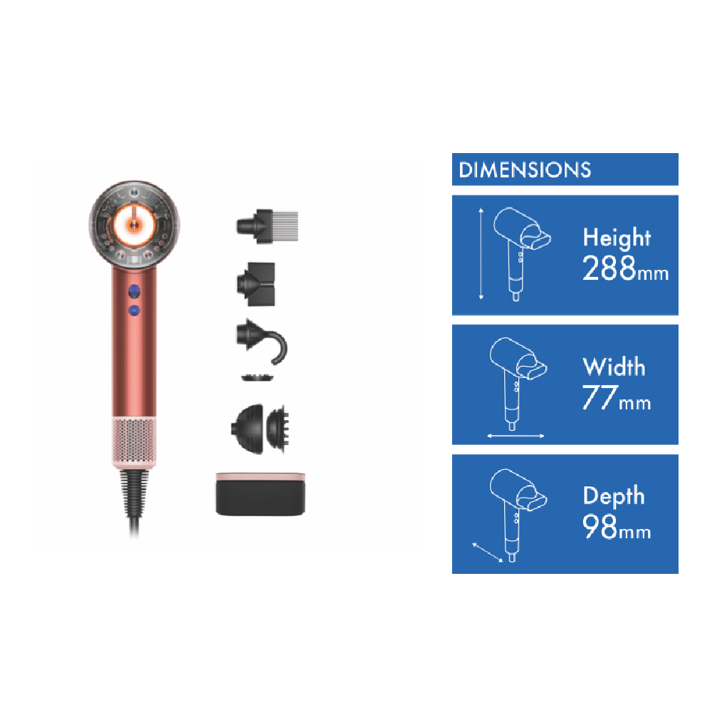 Functions Cold shot button, Scalp protect, Dyson AirMultiplier technology, Wave%2BCurl diffuser